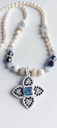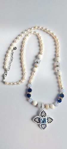 6962 Vintage Necklace mit Swarovski Crystal & Pearls 60cm