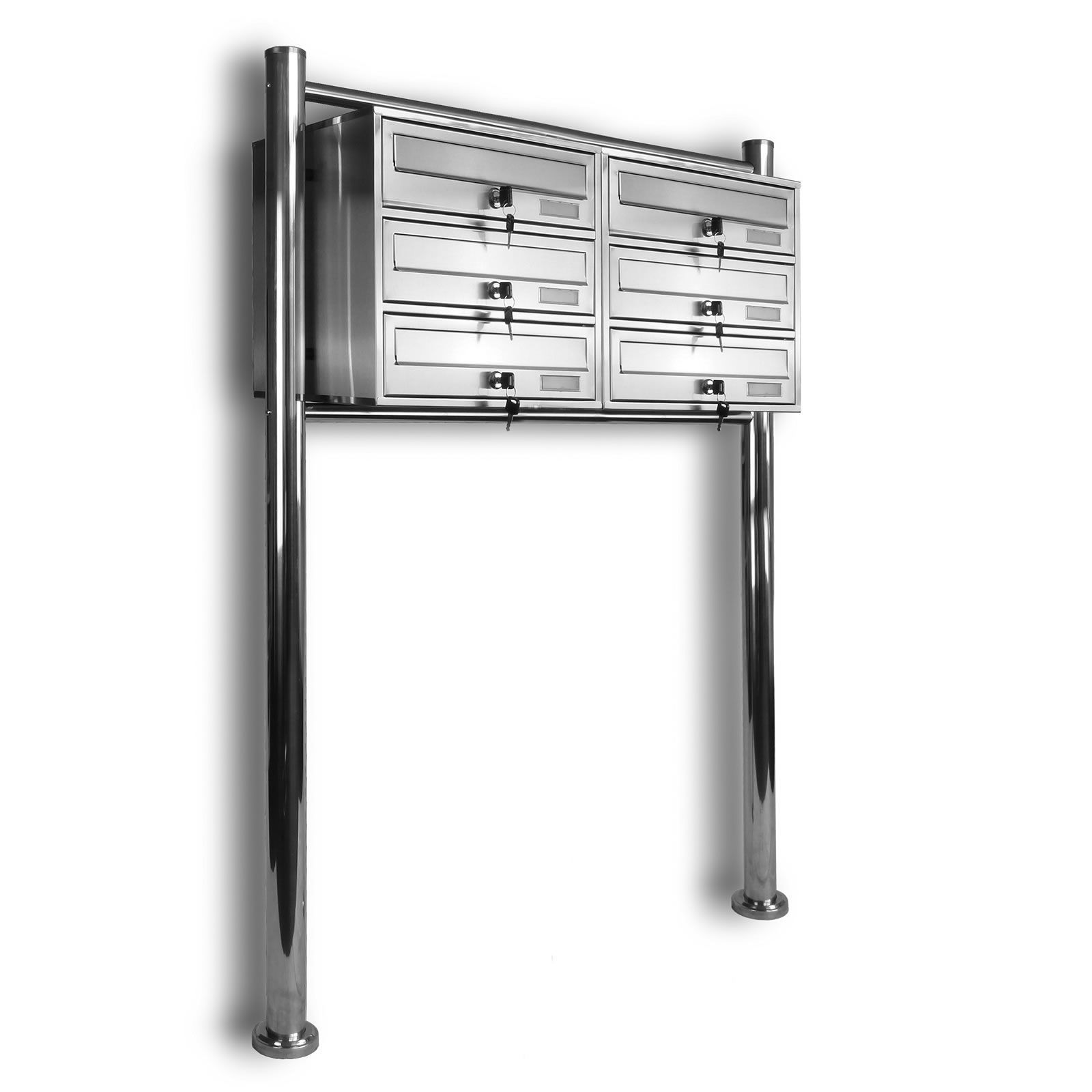6er 2x3 Kelvin® - Edelstahl Standbriefkasten Briefkasten Briefkastenanlage