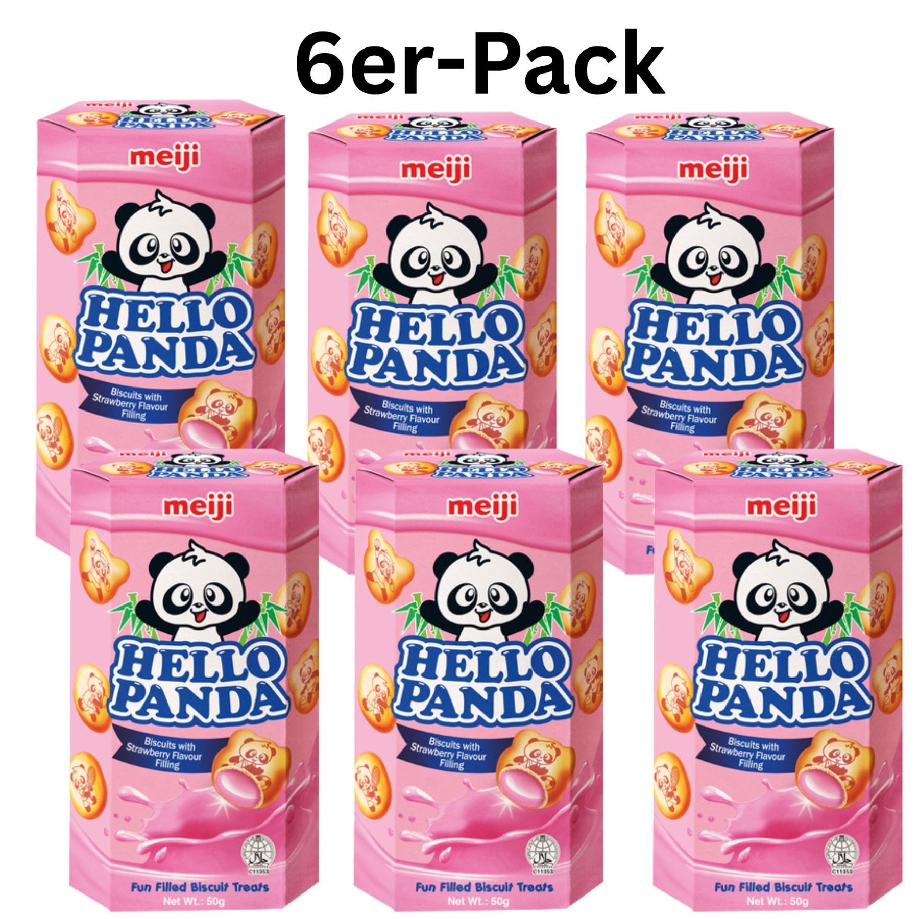 6er-Pack Meiji Hello Panda Kekse Erdbeerfüllung 50g