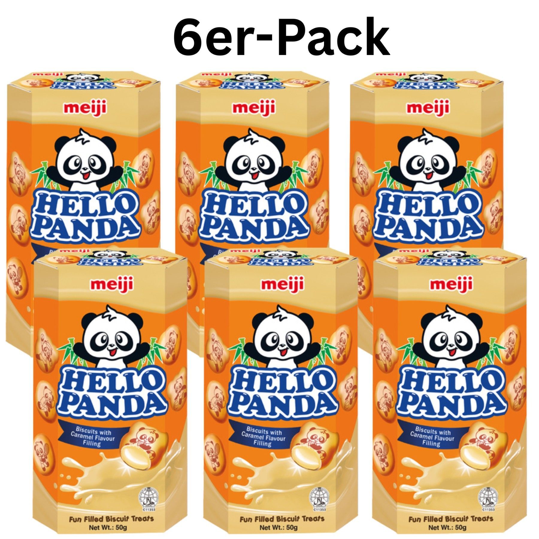 6er-Pack Meiji Hello Panda Kekse Karamelfüllung 50g