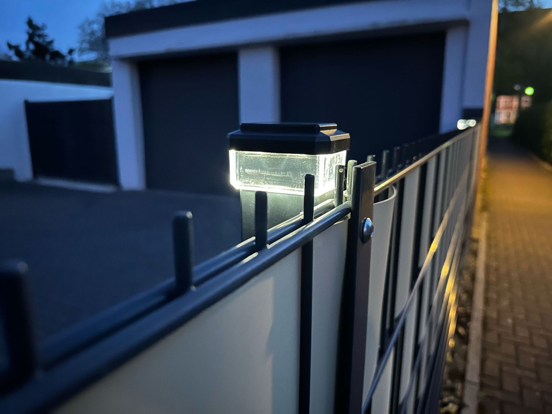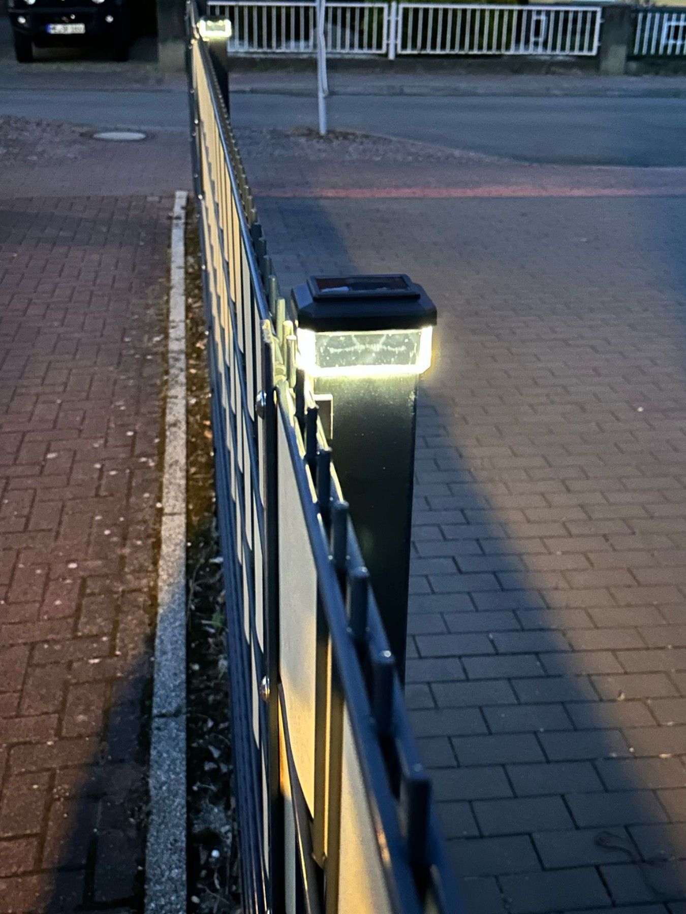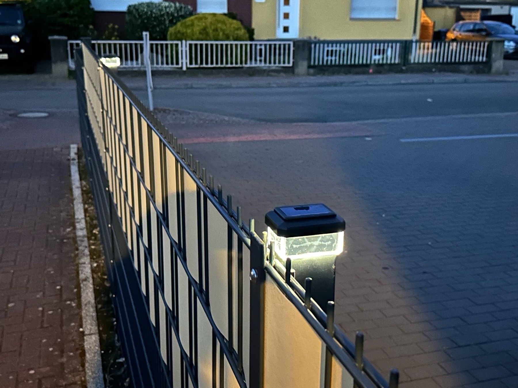 Praktisches 6er-Set Solarleuchten für 60x40 mm Pfosten – ideal für Doppelstabmattenzäune. Passgenau, wetterfest & mit automatischer Dämmerungsschaltung