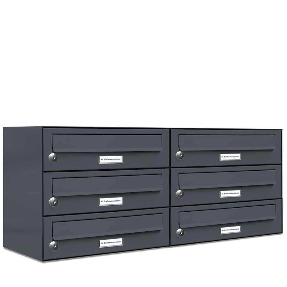 6er Premium Briefkasten Anthrazit RAL Farbe 7016 für Außen Wand Postkasten 2x3 L