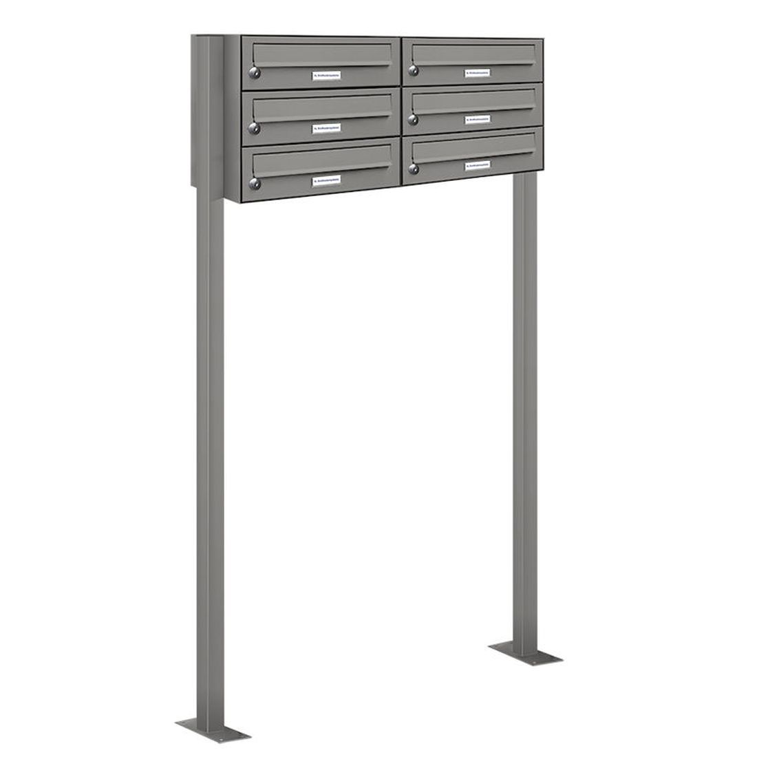 6er Premium Standbriefkasten RAL 9007 freistehend Postkasten Ständer 2x3 L