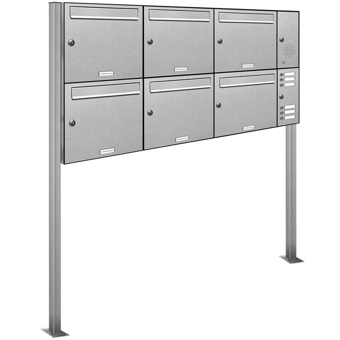 6er Premium V2A Edelstahl Standbriefkasten Anlage Klingel Rechts Postkasten 3x2