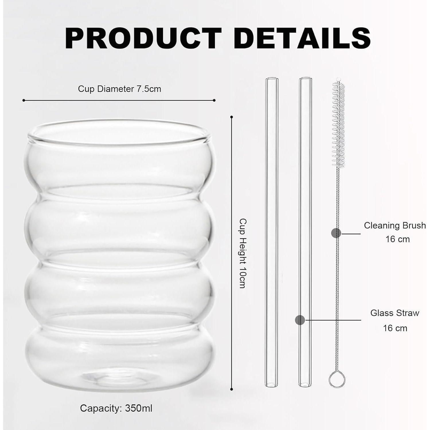 6er Set 350ml Gerippte Cocktailgläser Longdrinkgläser mit Glasstrohhalmen