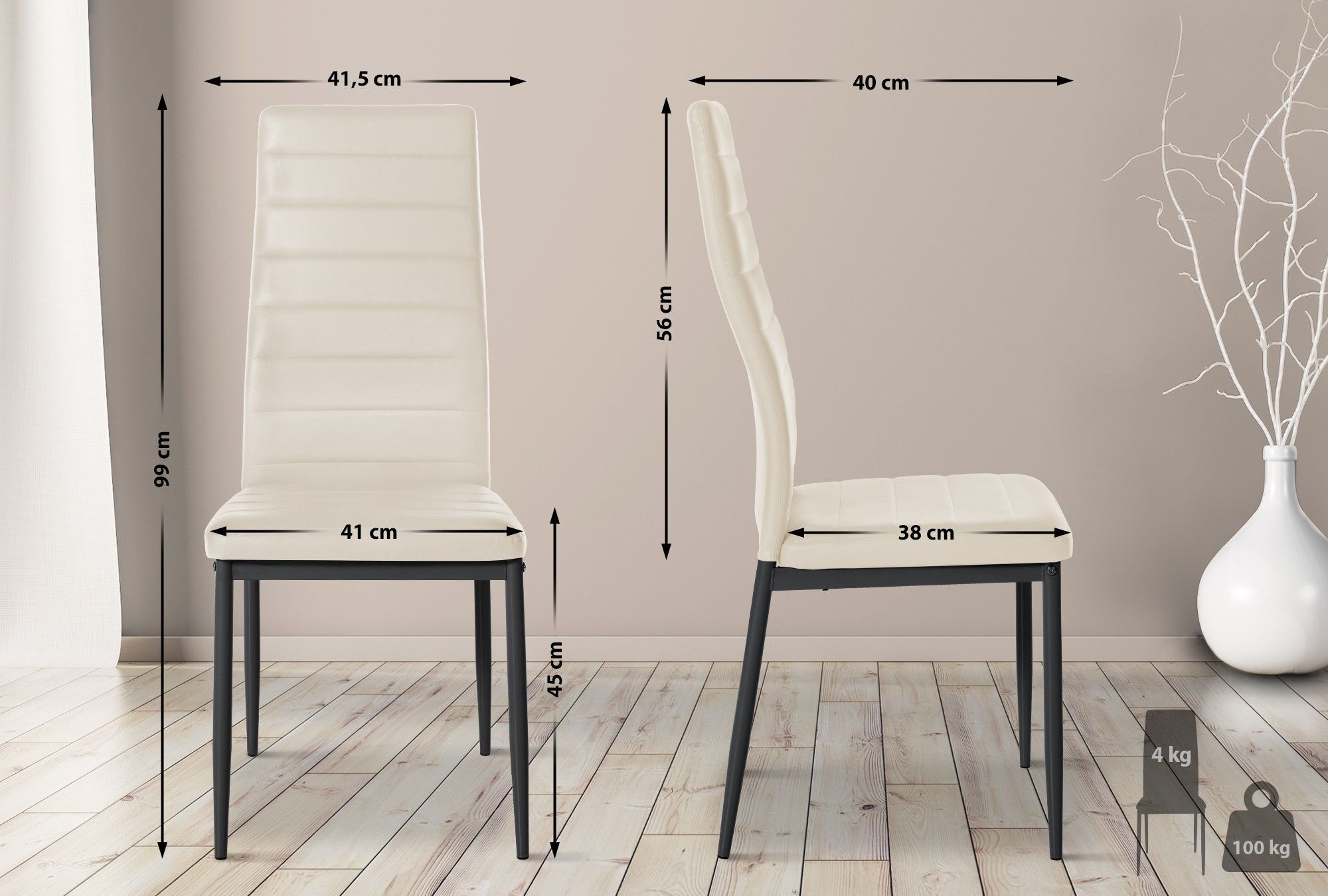 6er Set Esszimmerstühle Mayfair Kunstleder, creme