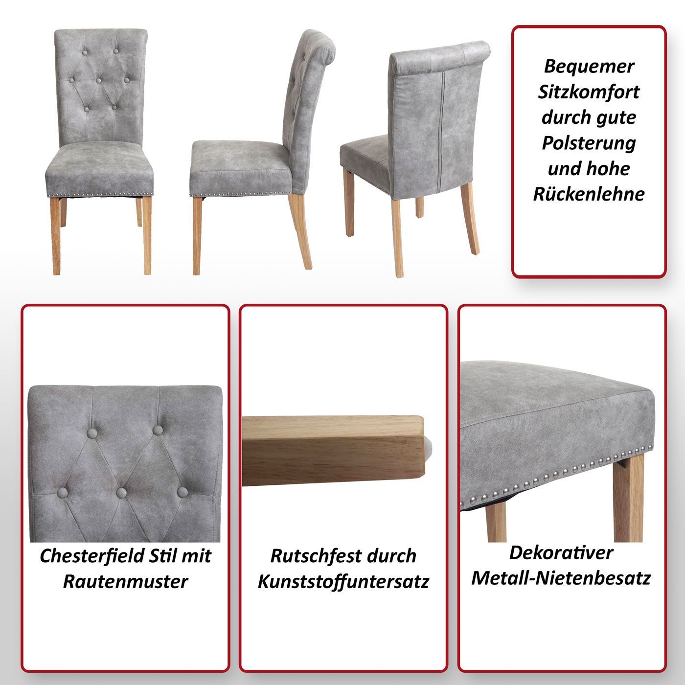 Mendler 6er-Set Esszimmerstuhl Chesterfield II, Stuhl Küchenstuhl, Nieten