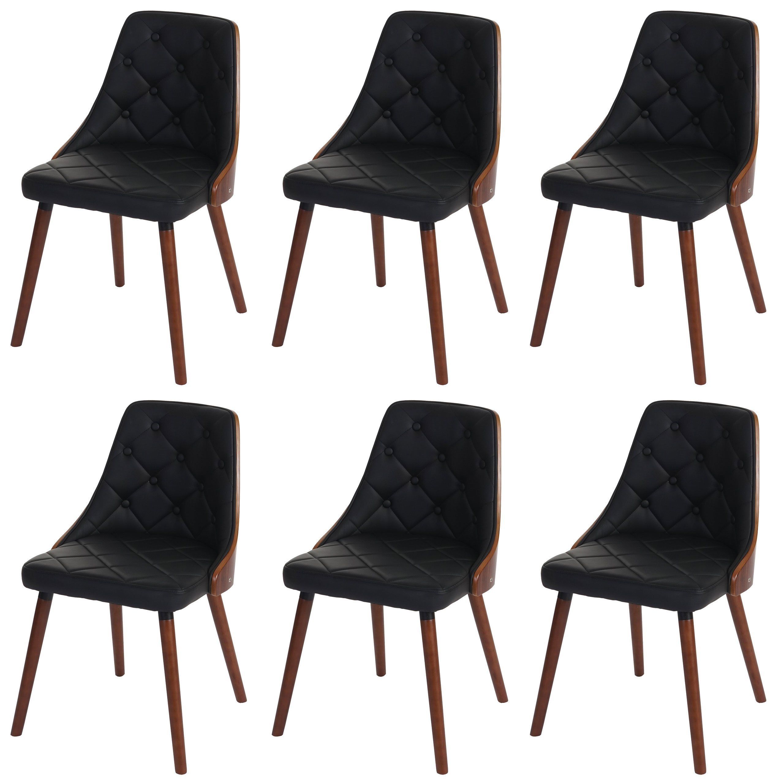 Mendler 6er-Set Esszimmerstuhl HWC-A75, Besucherstuhl Küchenstuhl, Walnuss-Optik Bugholz