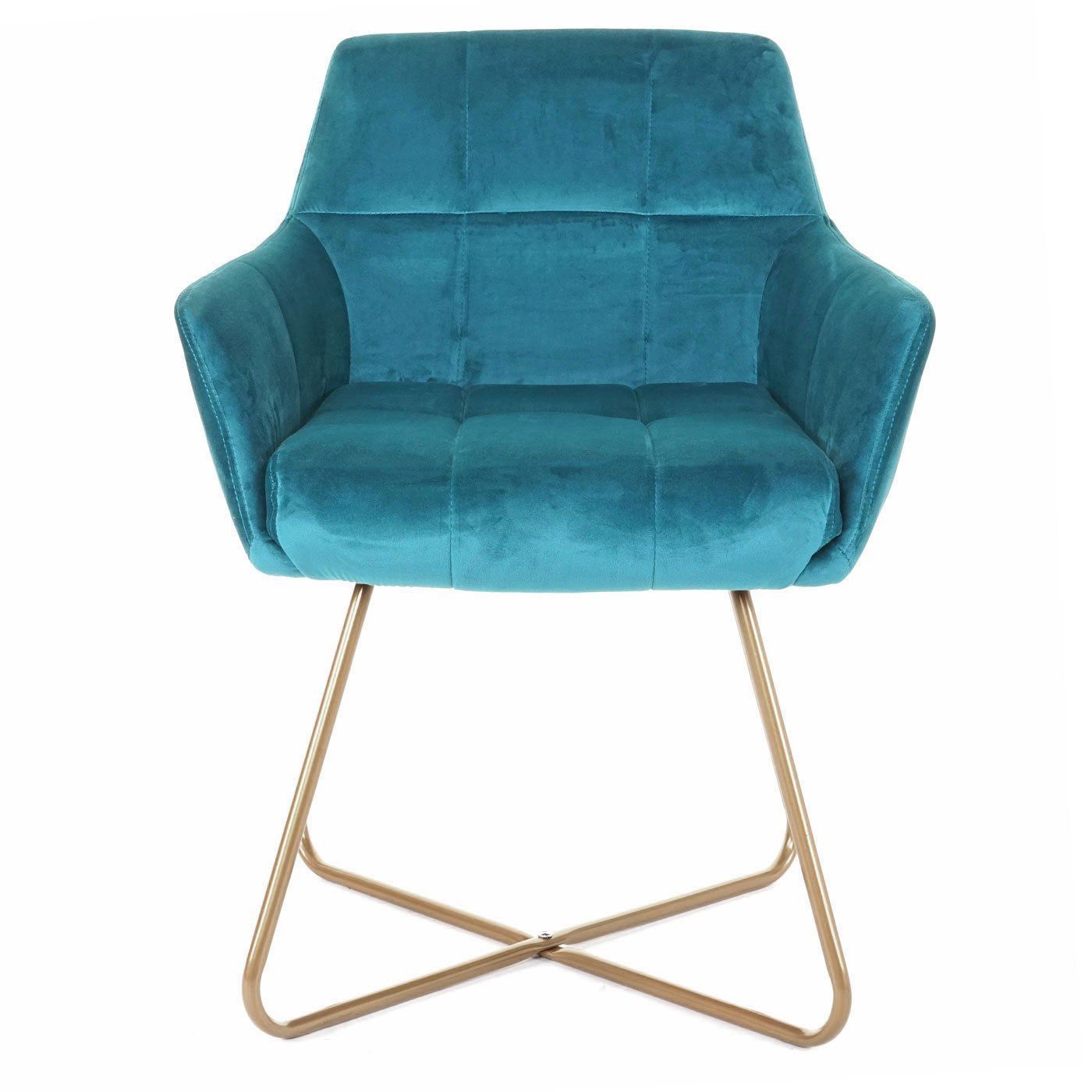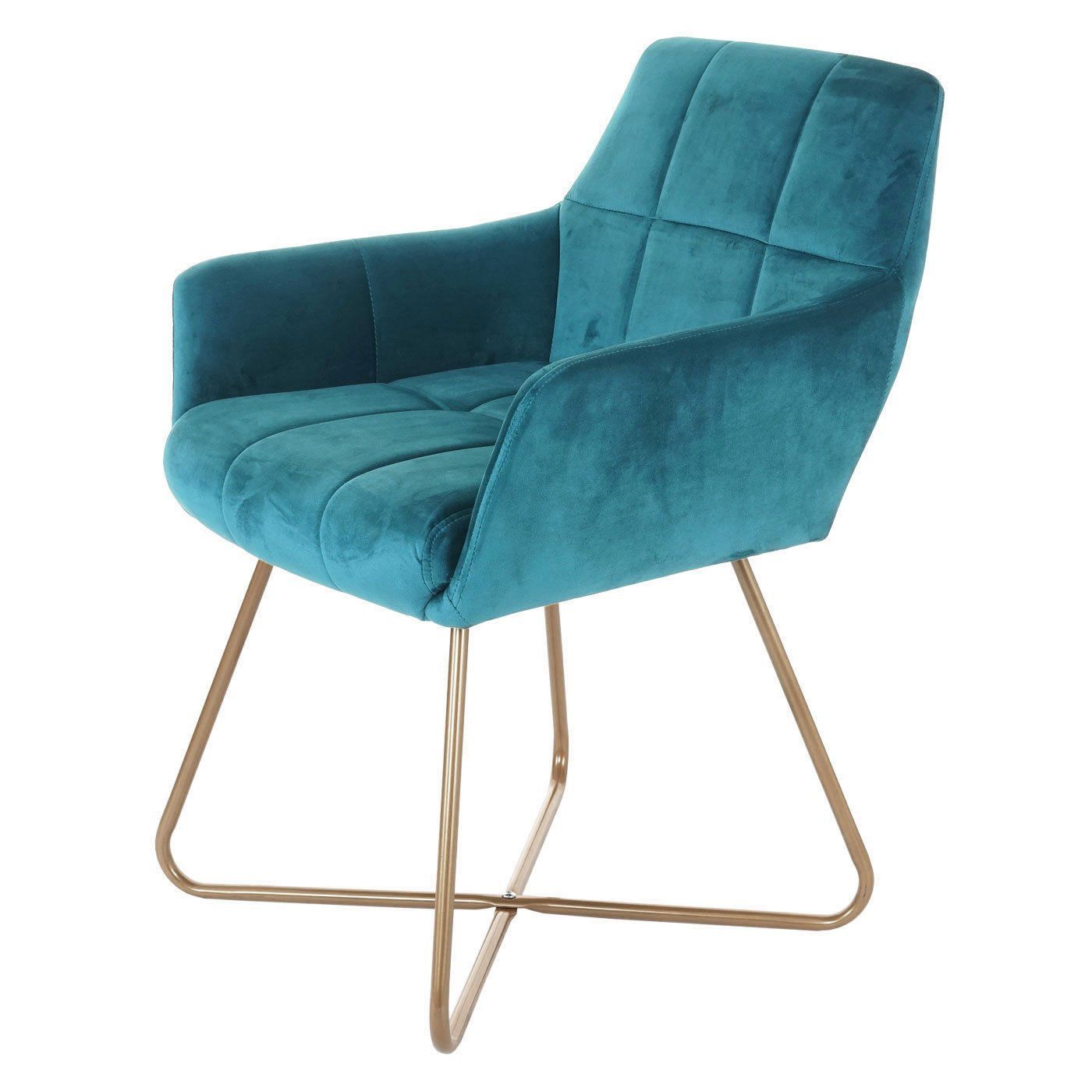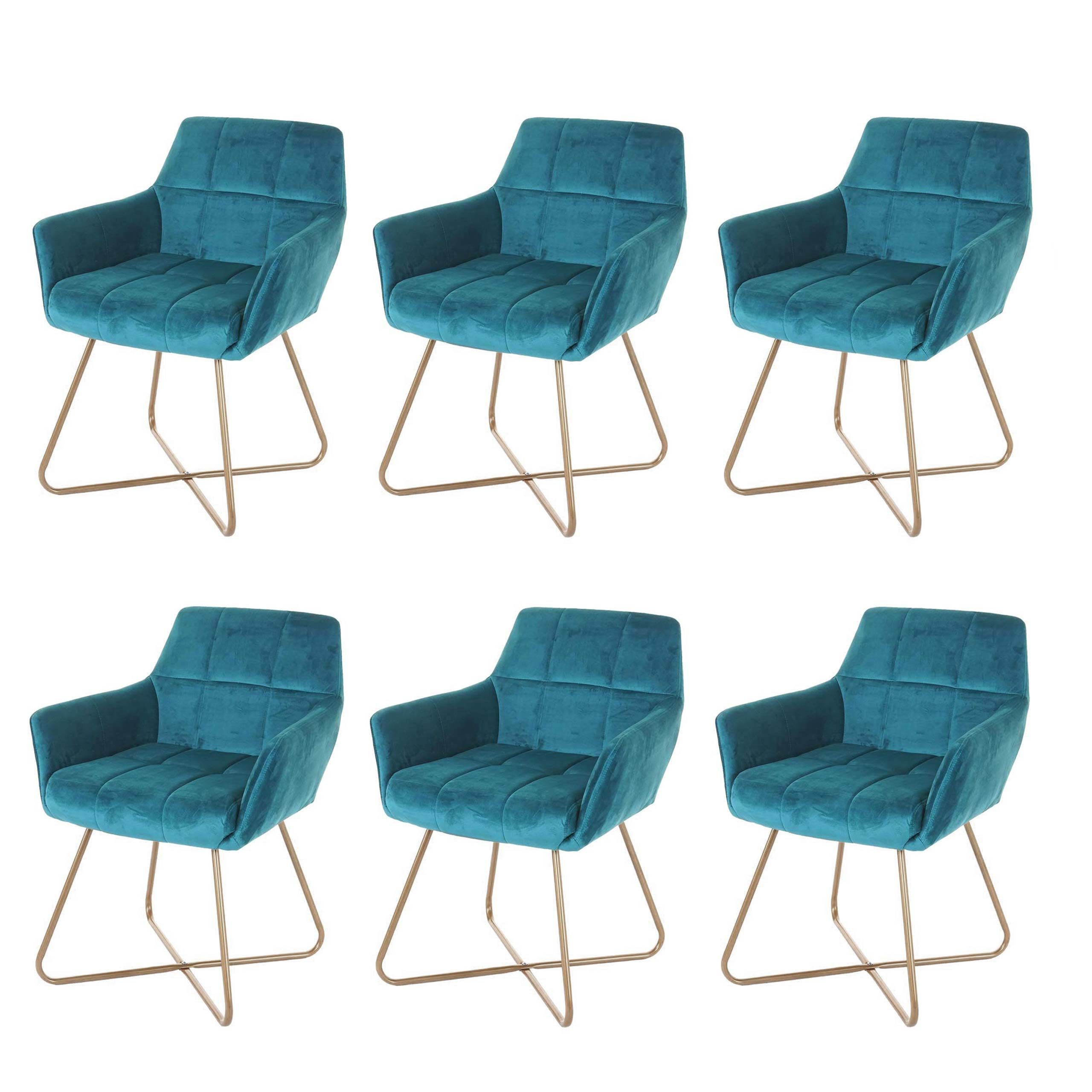 Mendler 6er-Set Esszimmerstuhl HWC-F37, Stuhl Küchenstuhl, Retro Design Samt goldene Füße