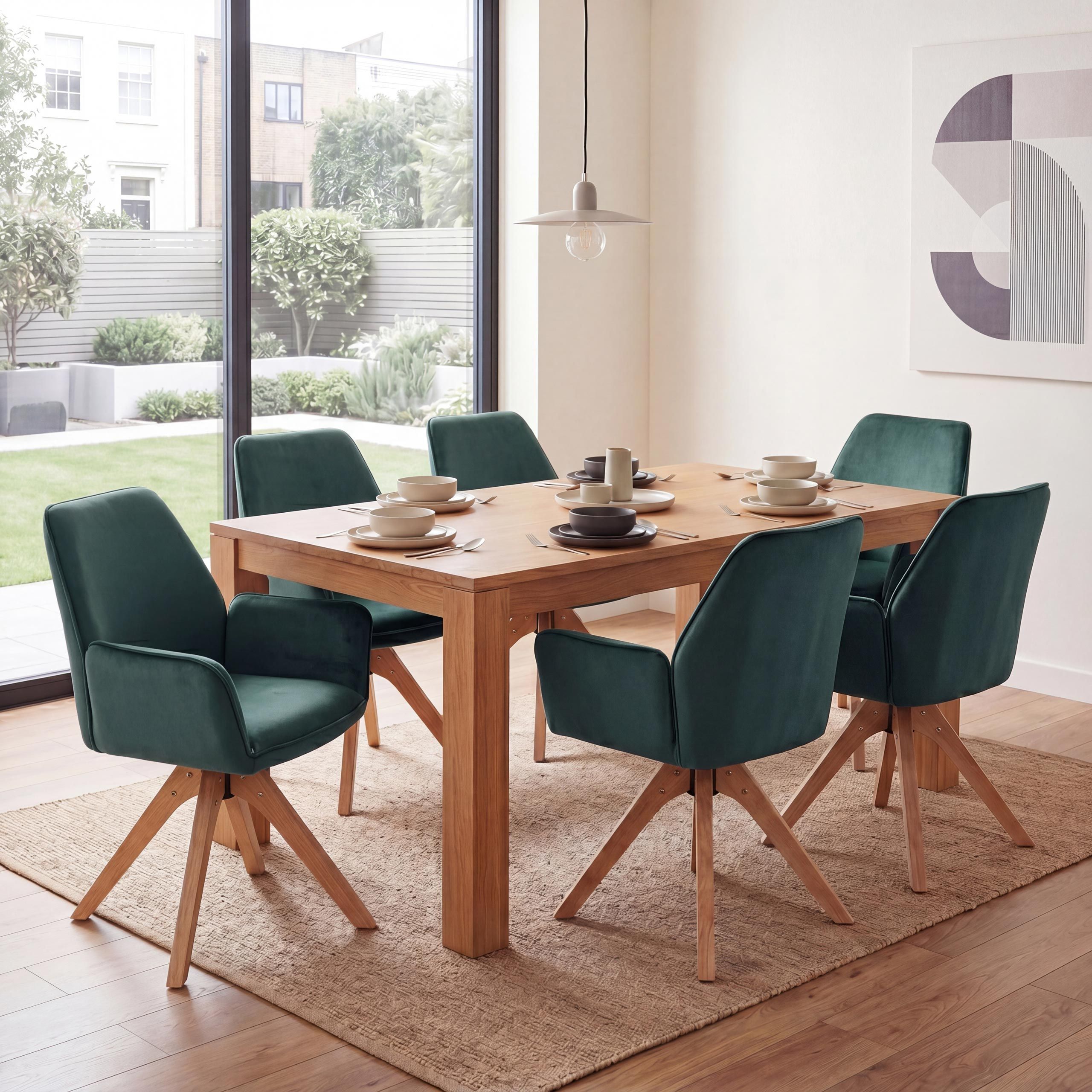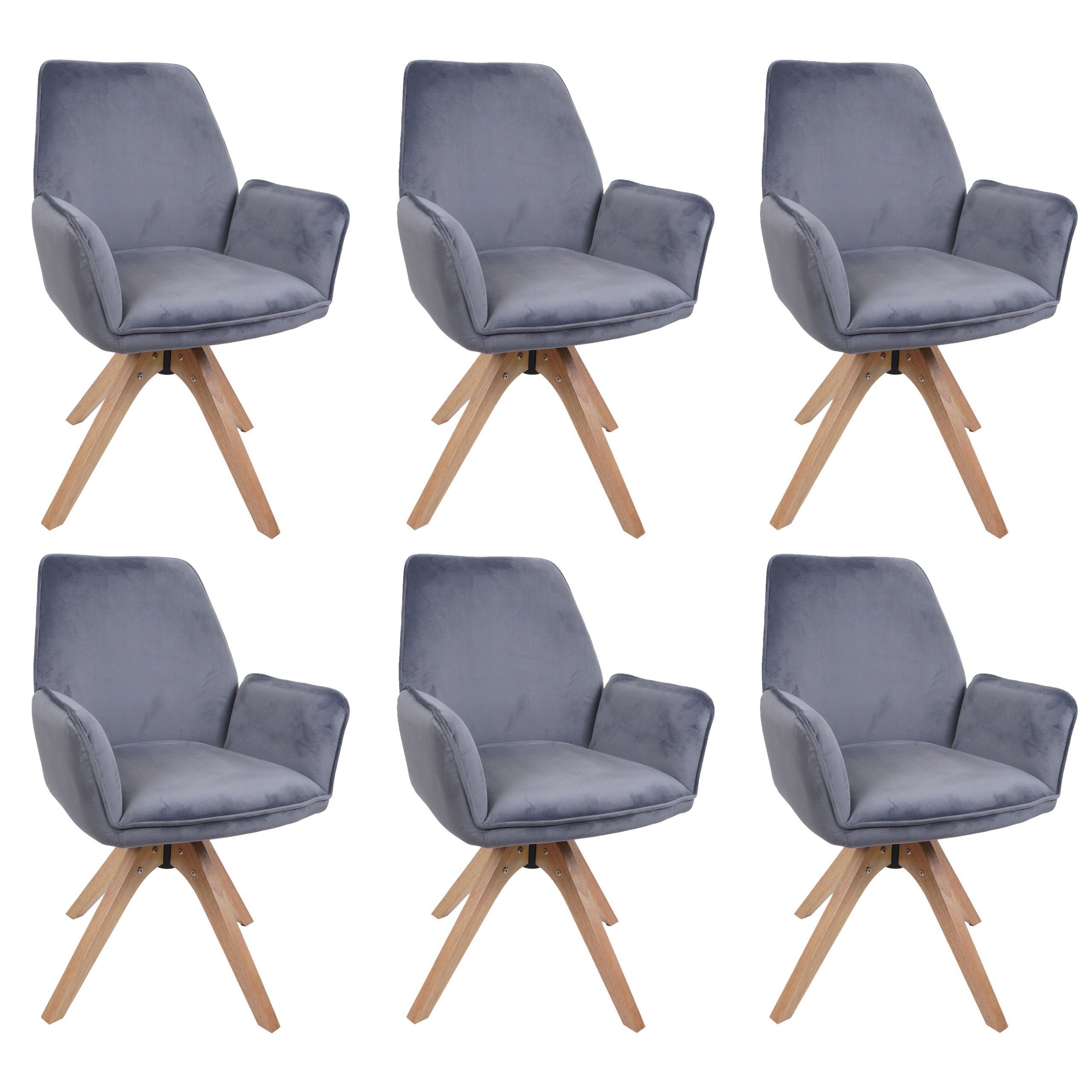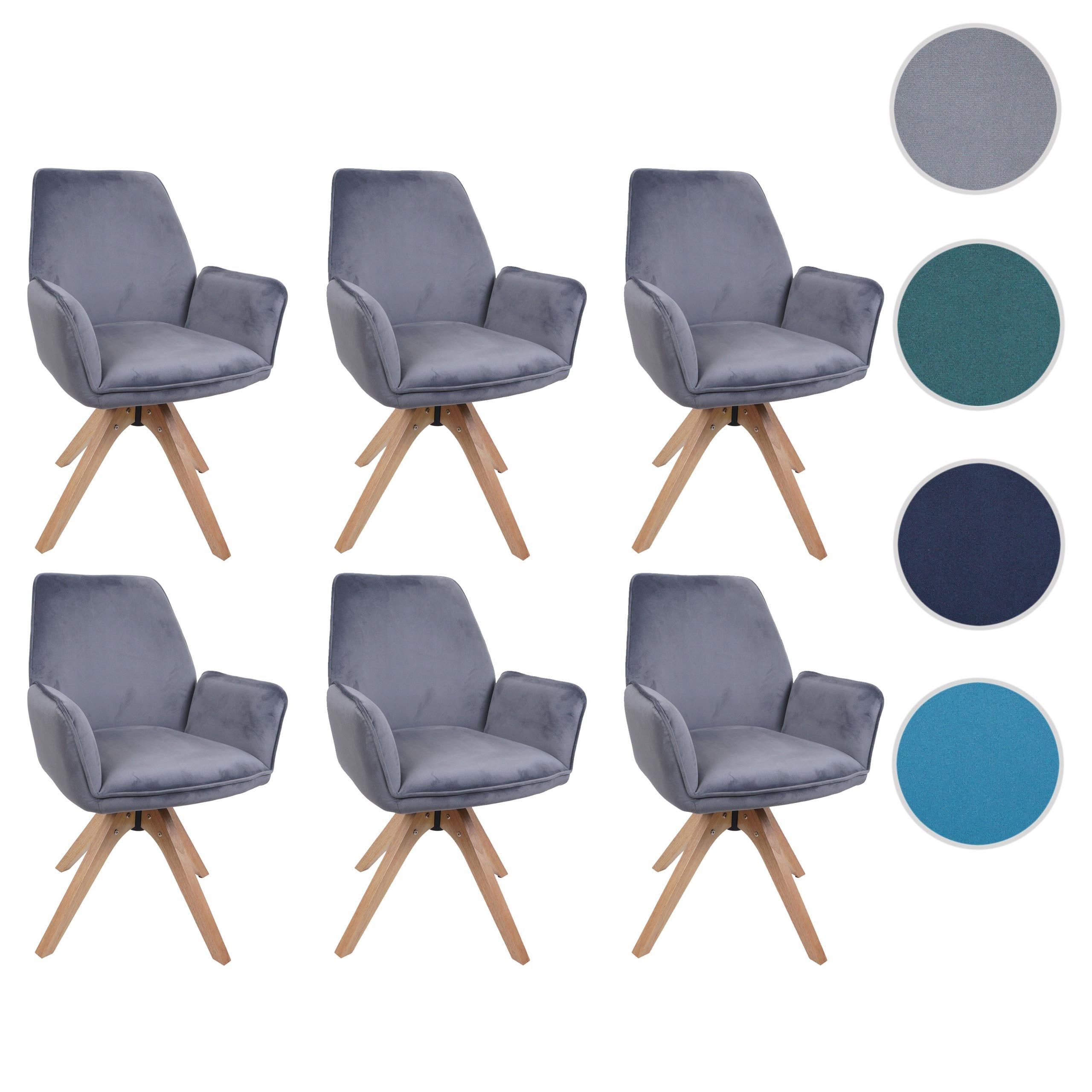 Mendler 6er-Set Esszimmerstuhl HWC-G67, mit Armlehne, drehbar Holz Samt 320 g/m² MVG