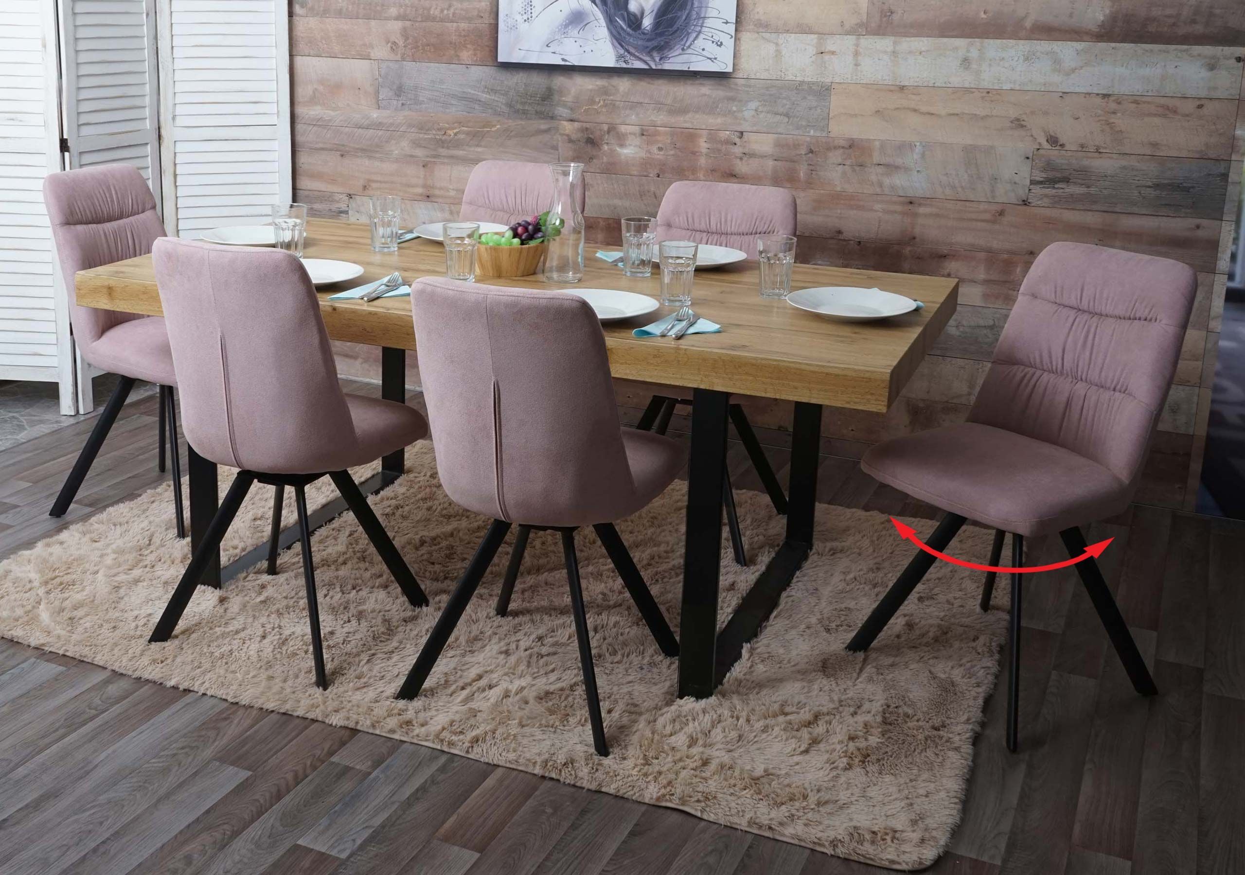 Mendler 6er-Set Esszimmerstuhl HWC-J69, Küchenstuhl Stuhl, drehbar Auto-Position, Samt