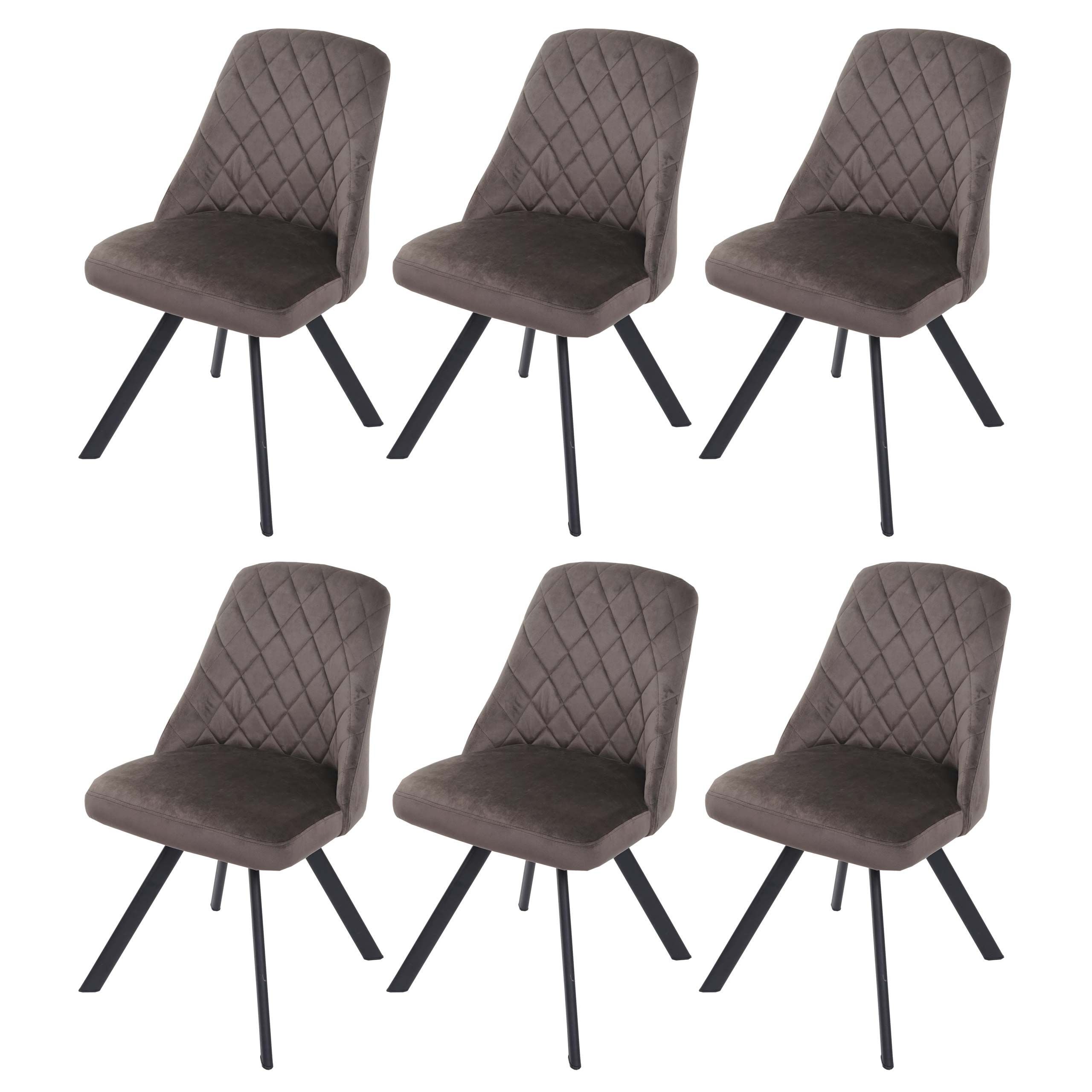 Mendler 6er-Set Esszimmerstuhl HWC-K25, Küchenstuhl Lehnstuhl Polsterstuhl, Metall Samt