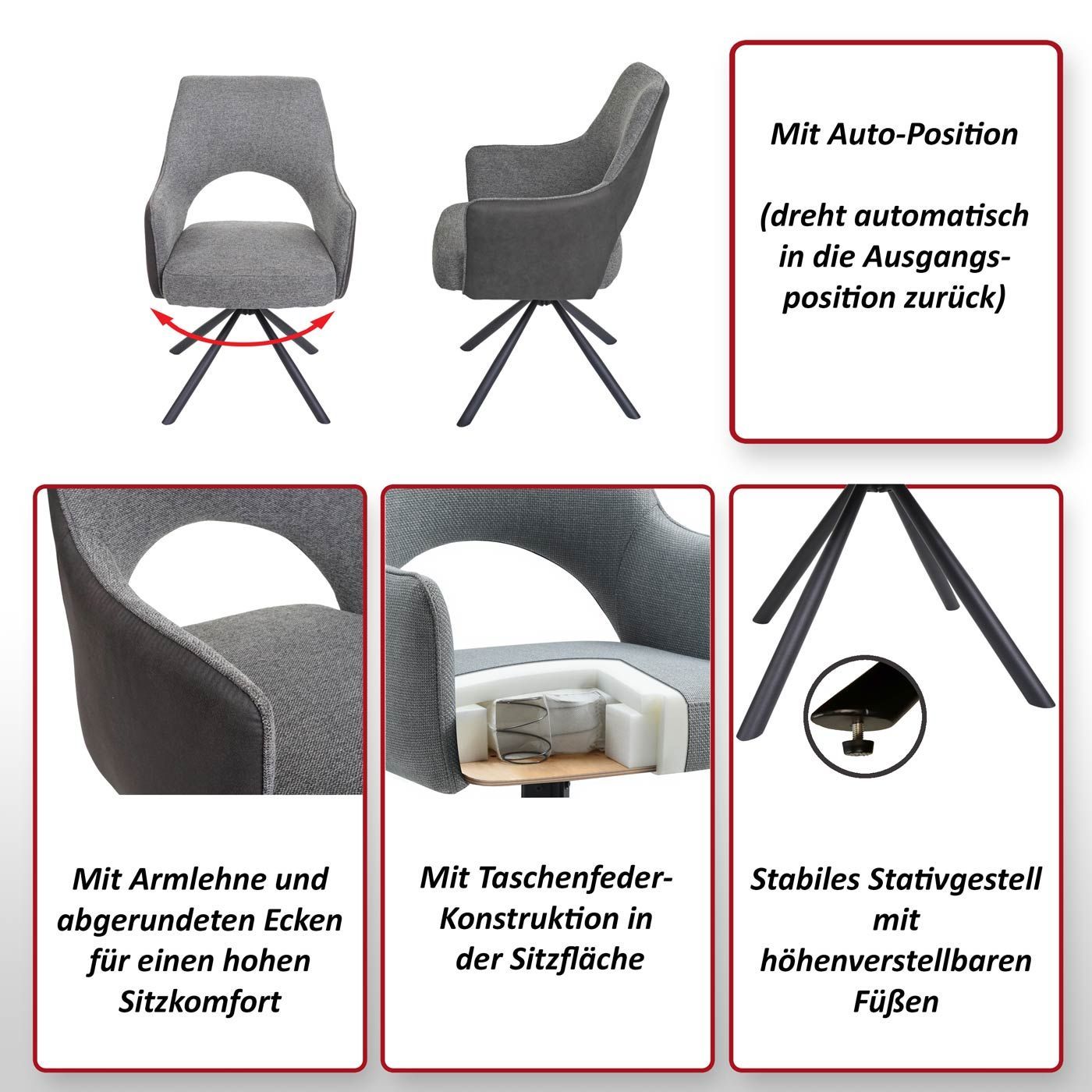 Mendler 6er-Set Esszimmerstuhl HWC-K30, Küchenstuhl Lehnstuhl, drehbar Auto-Position