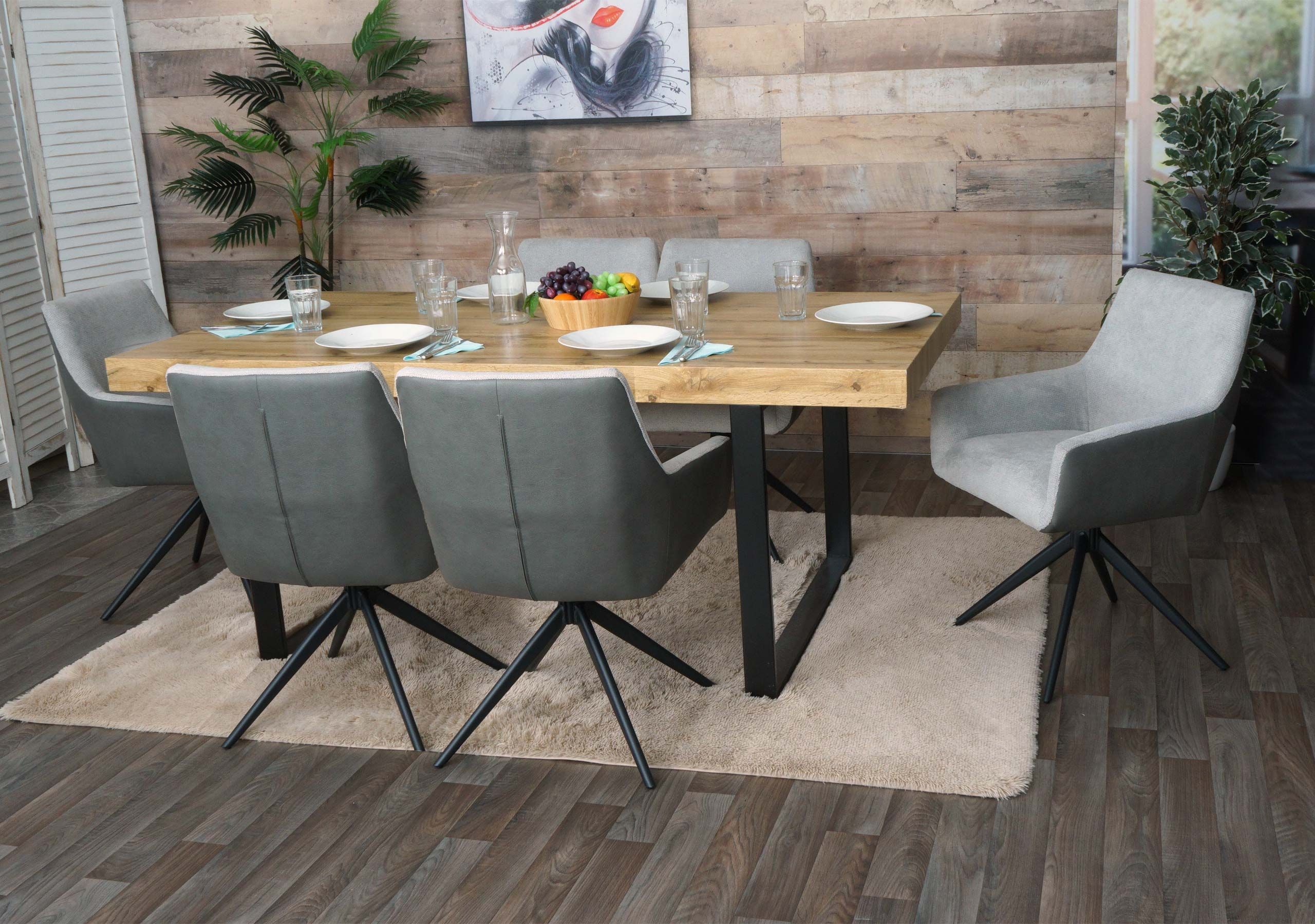 Mendler 6er-Set Esszimmerstuhl HWC-L91, Küchenstuhl Armlehne drehbar Auto-Position