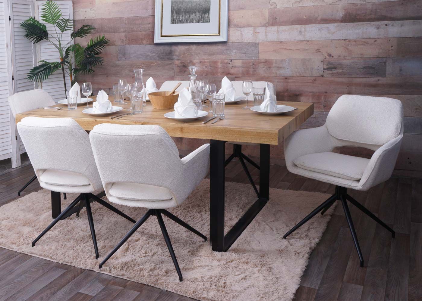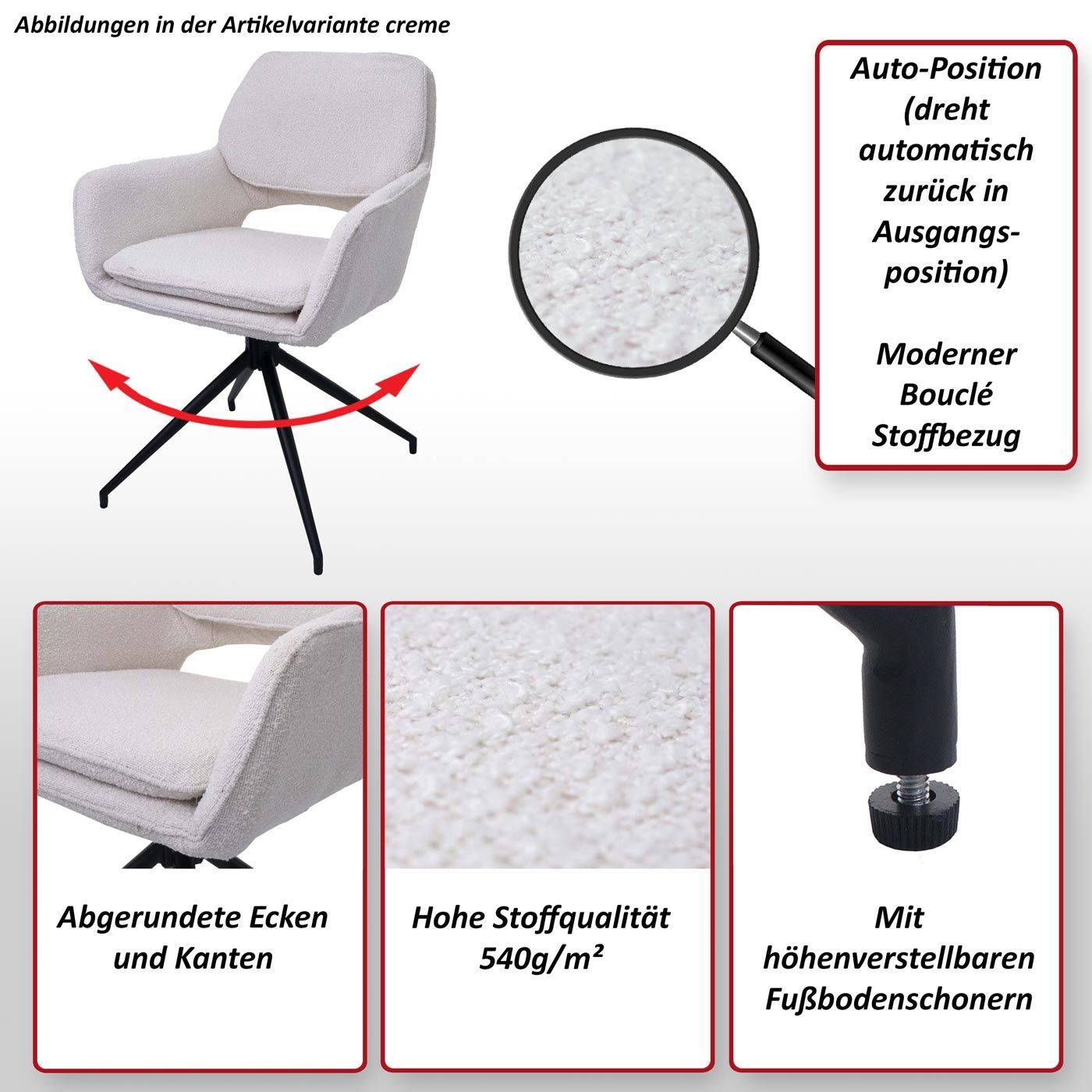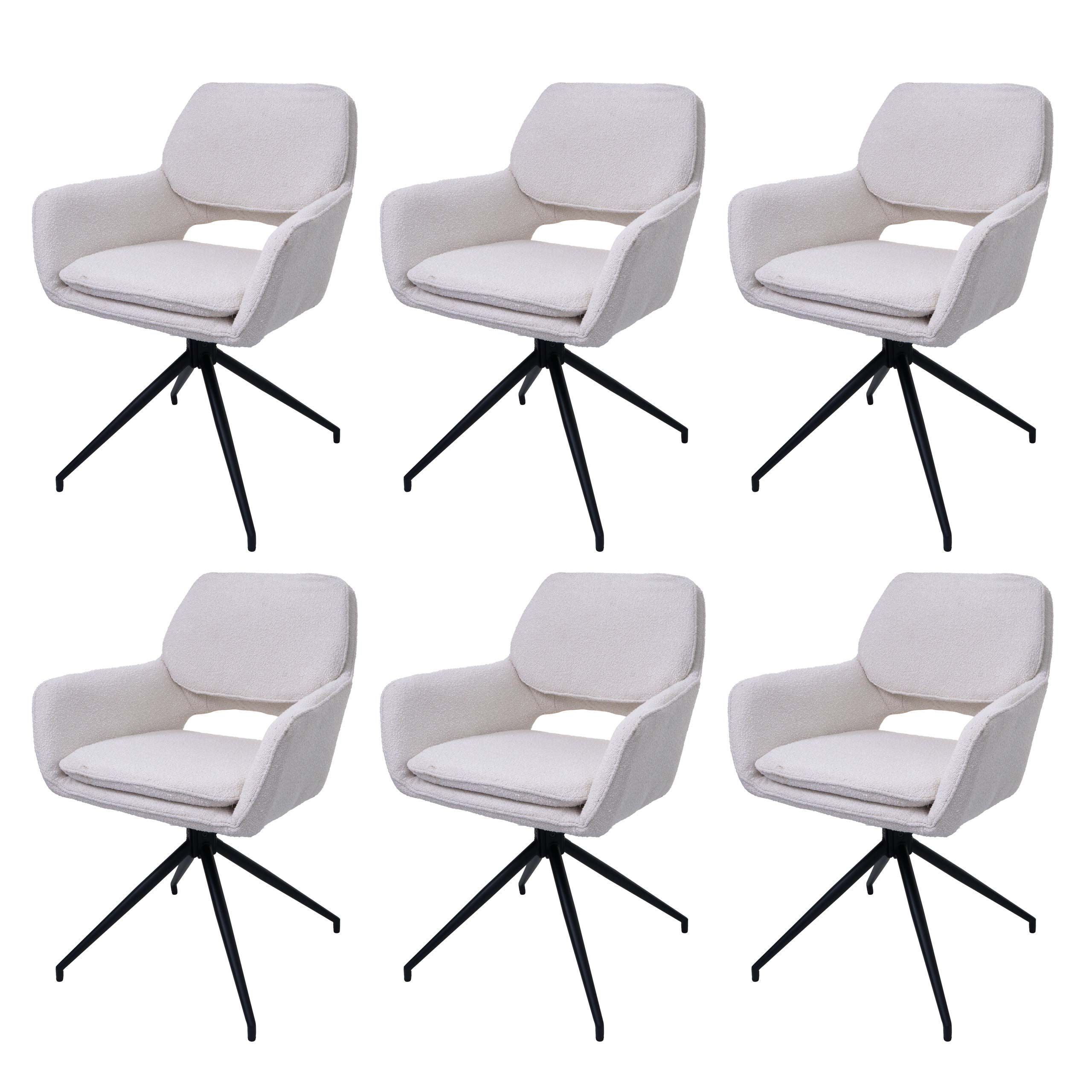 Mendler 6er-Set Esszimmerstuhl HWC-N74, Küchenstuhl, Auto-Return, Stoff Bouclé (540g/m²)