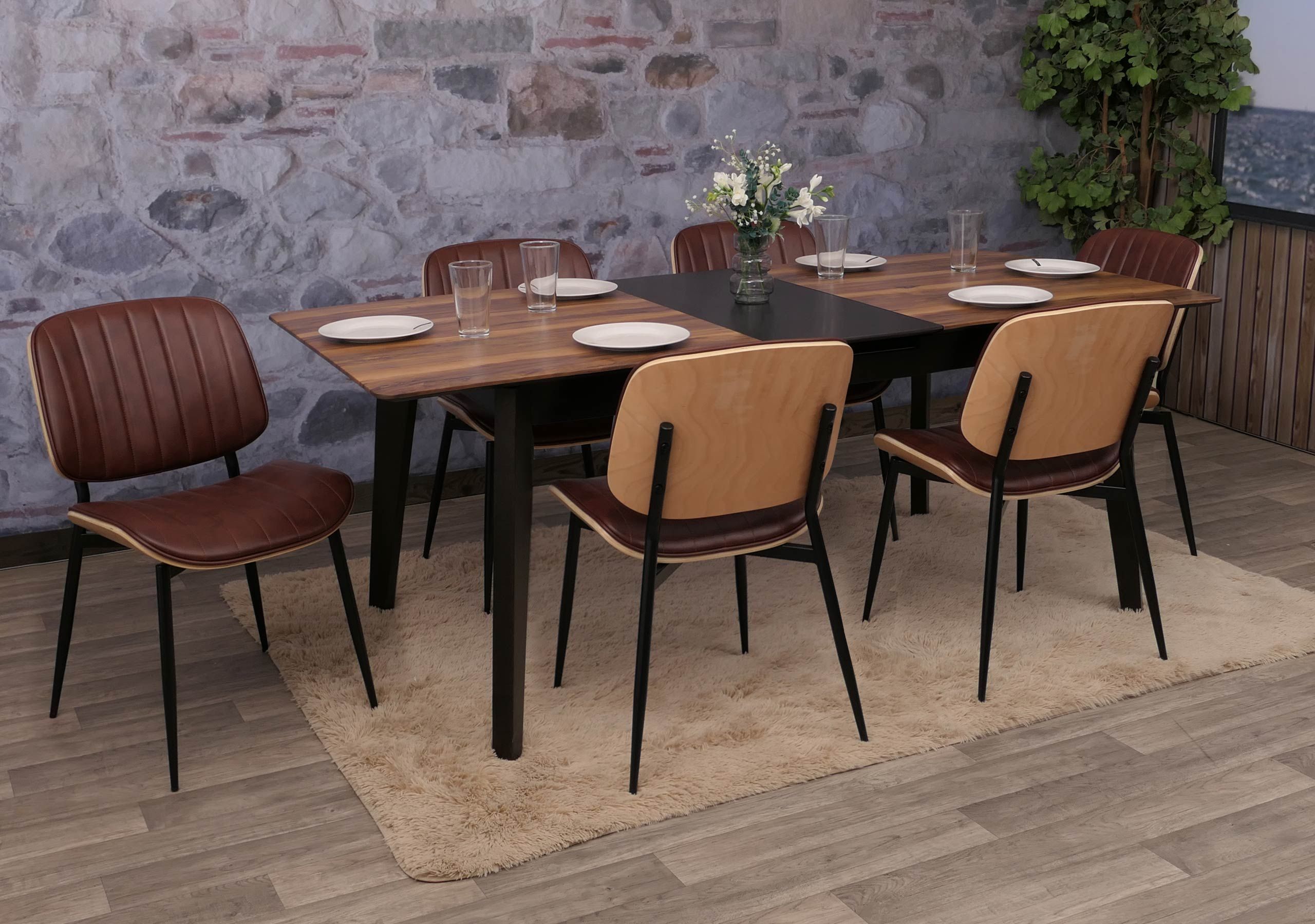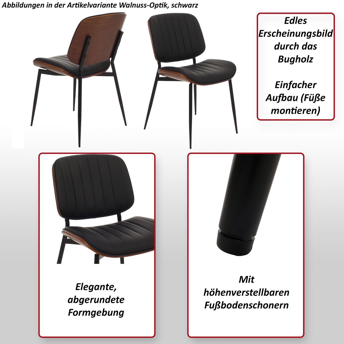 Mendler 6er-Set Esszimmerstuhl HWC-O44, Küchenstuhl Stuhl, Bugholz Kunstleder Öko-Tex FSC®