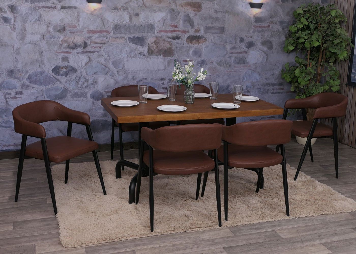 Mendler 6er-Set Esszimmerstuhl HWC-P29, Küchenstuhl, Industrial Retro Vintage Kunstleder