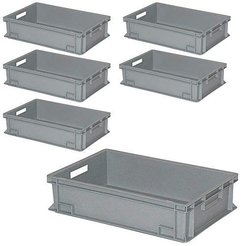 6er Set Eurobehälter mit 2 Durchfassgriffen 600x400x150 mm, 27 Liter, grau