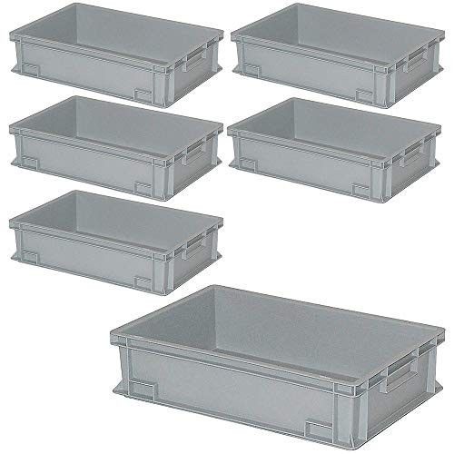 6er Set Eurobehälter mit 2 Griffleisten, LxBxH 600x400x150 mm, 27 Liter, grau