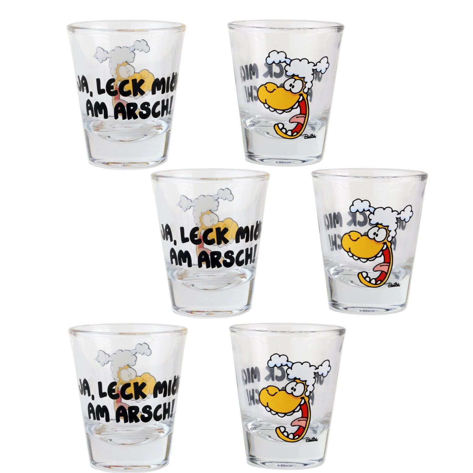 6er Set Ralph Ruthe Schnapsgläser Comic Schaf Ja leck mich am Arsch 6 Stück