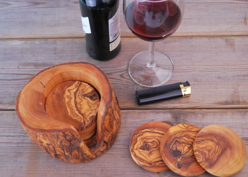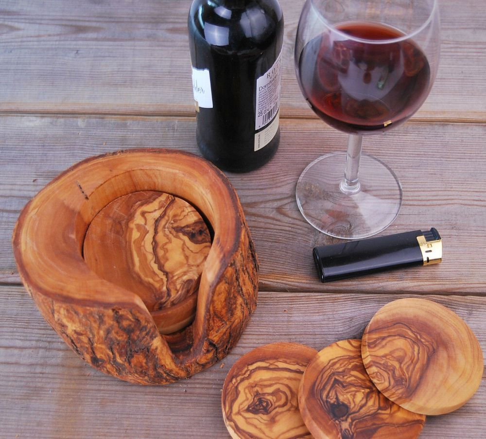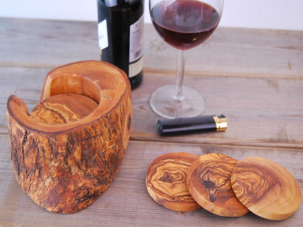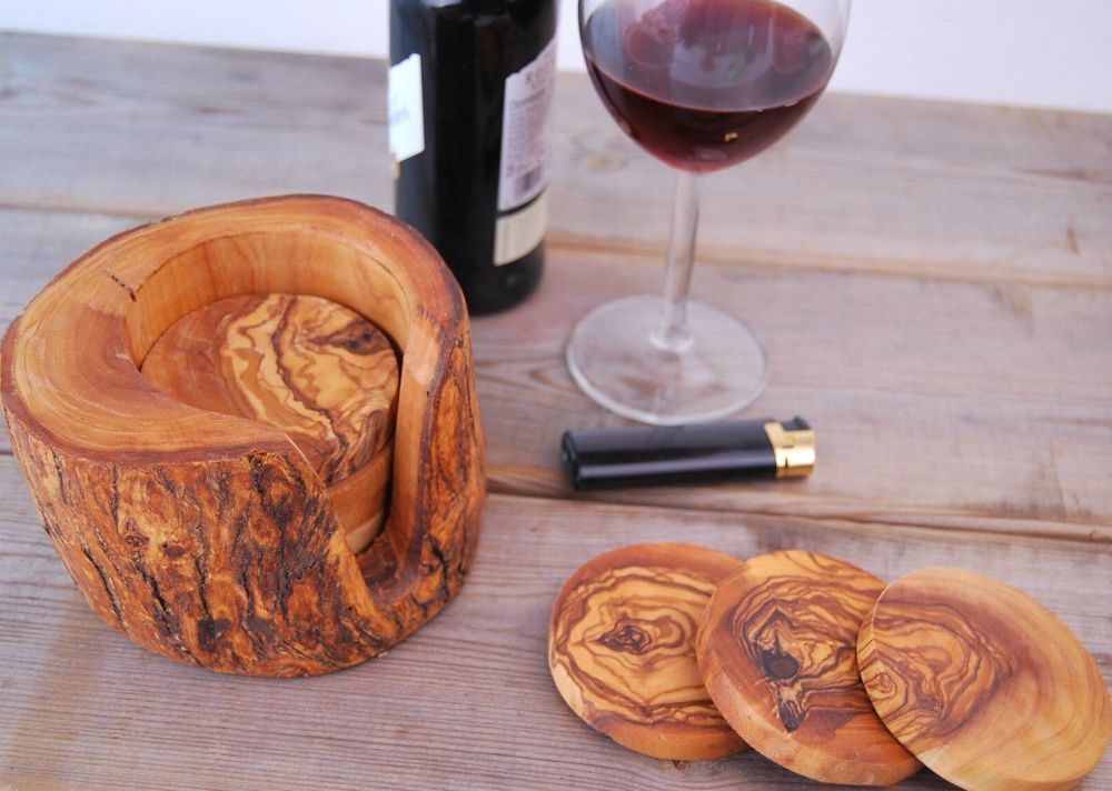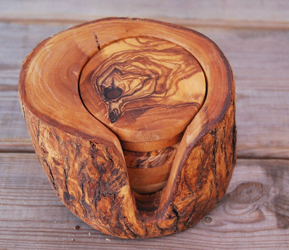 6er Set Untersetzer aus Olivenholz mit Halterung, Rustikal Holzuntersetzer Holz