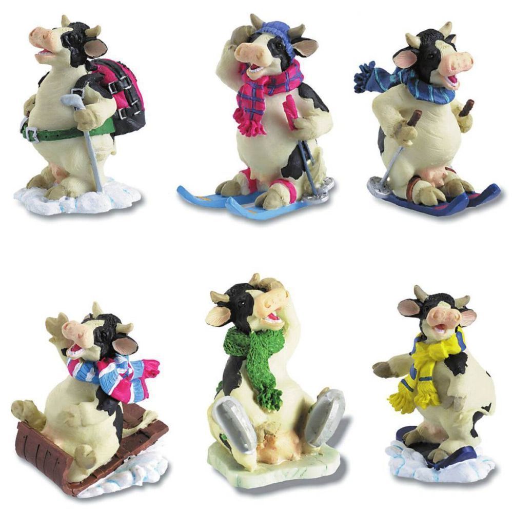 6er Set Wintersport Kühe 7cm (Gr. 7x5x5cm)