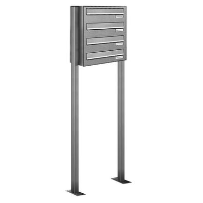 • 4er V2A Edelstahl Standbriefkasten Freistehend Durchwurfanlage
