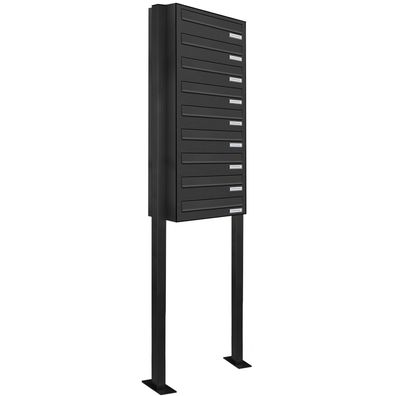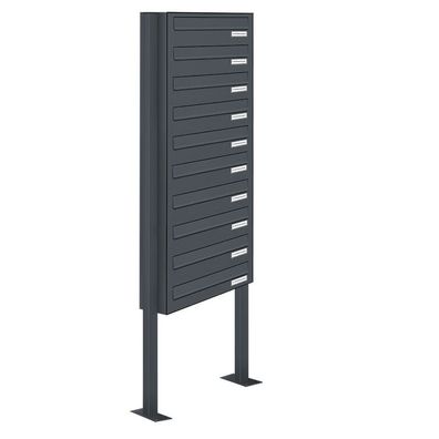 • 10er Premium Standbriefkasten Aluminiumgrau RAL 9007 freistehend Ständer