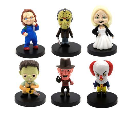 6PCS Freddy Jason Chucky Good Guy Clown Action Figur Horror Toy Cake Topper Set