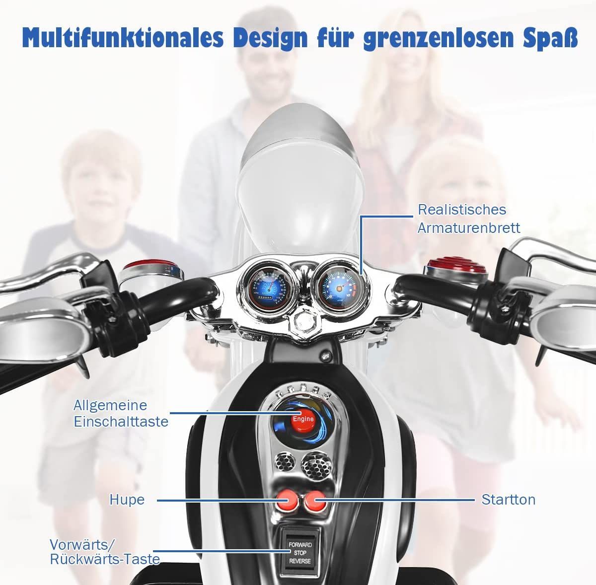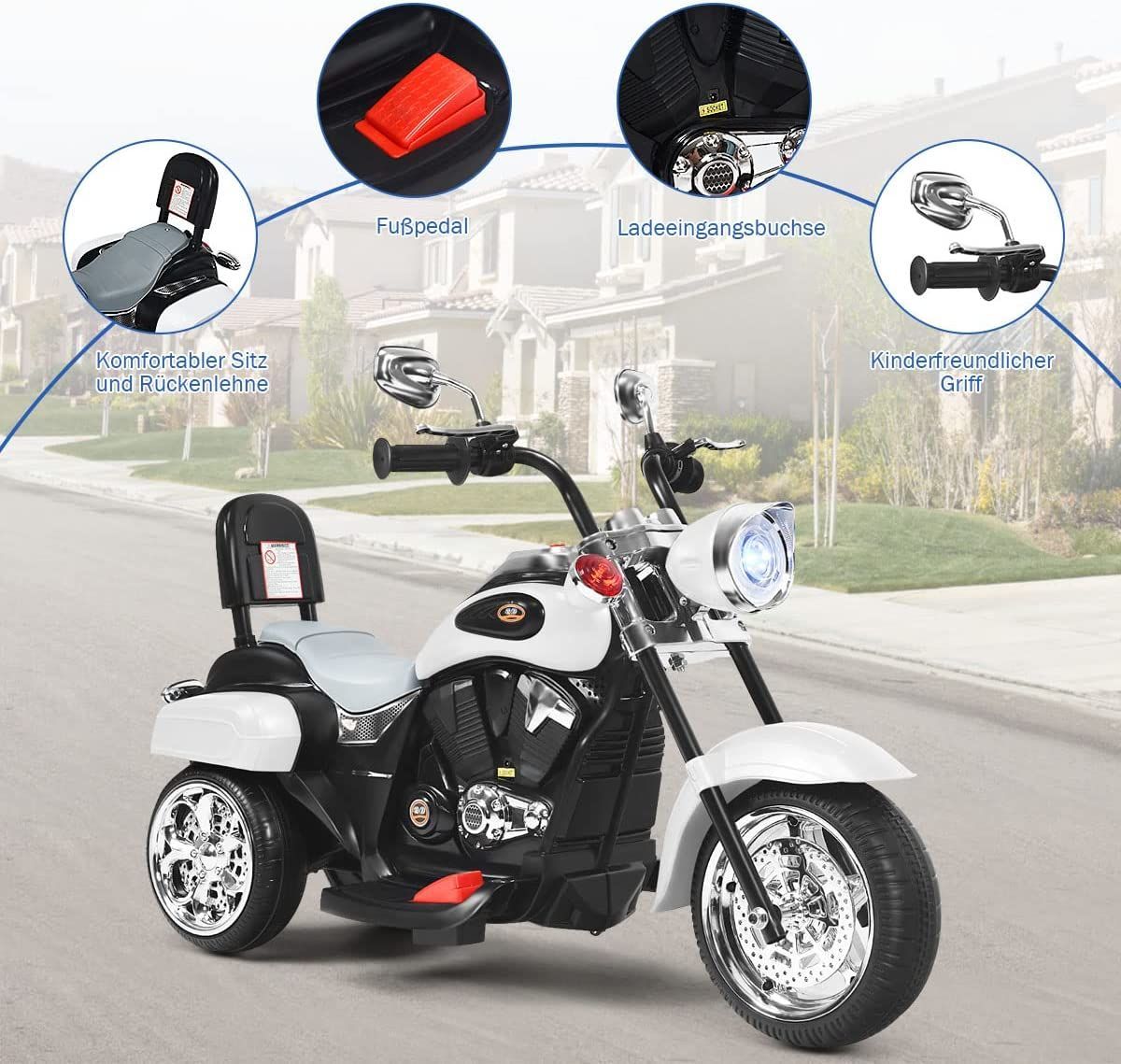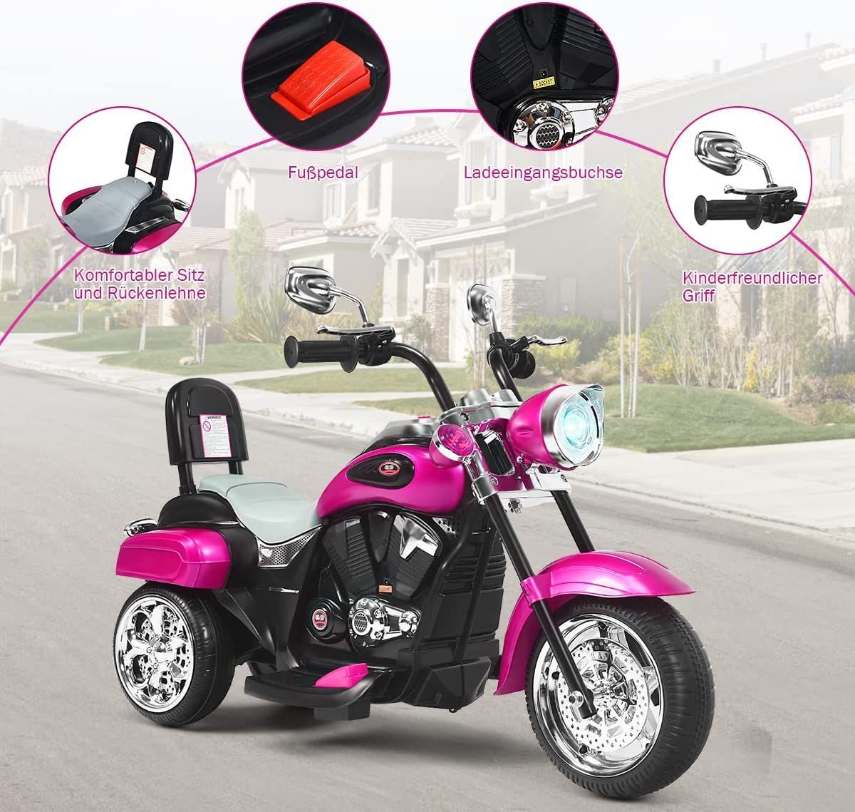 6V Elektro Motorrad Kinder mit verstellbaren Scheinwerfer, Dreirad Elektromotorrad