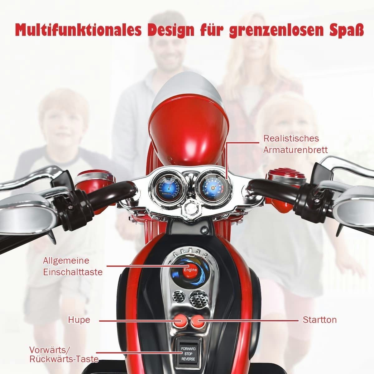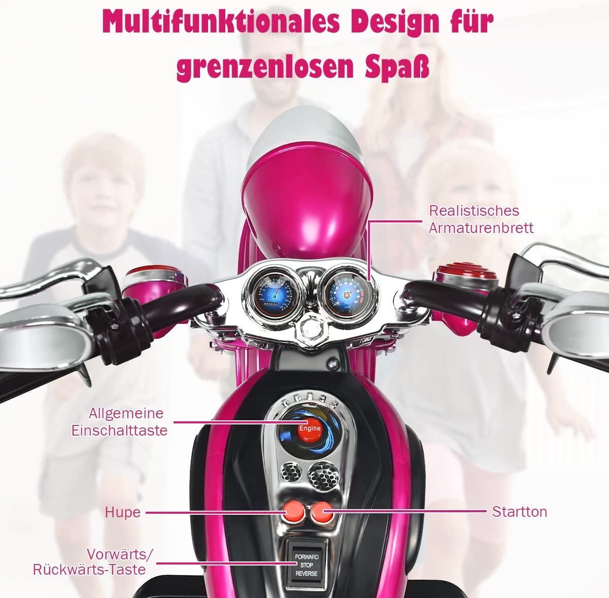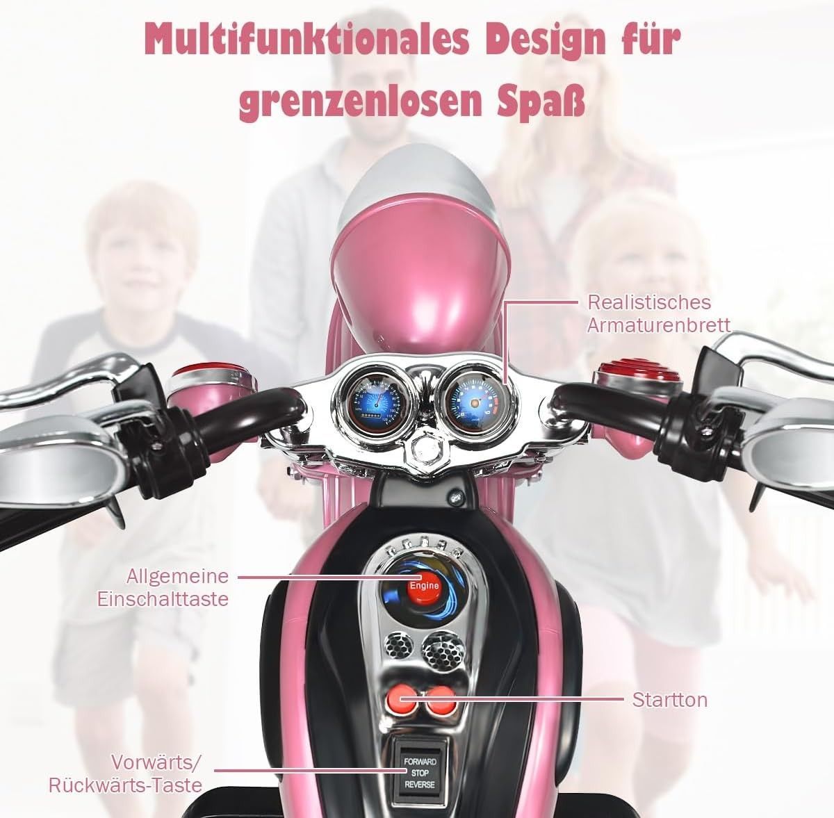 6V Elektro Motorrad Kinder mit verstellbaren Scheinwerfer, Dreirad Elektromotorrad
