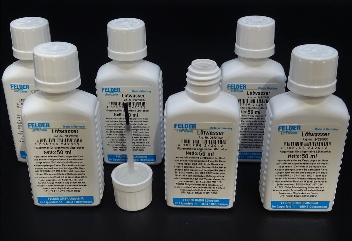 6x 50ml Lötwasser mit Pinsel Felder Flussmittel für allgemeine Lötarbeiten Löten