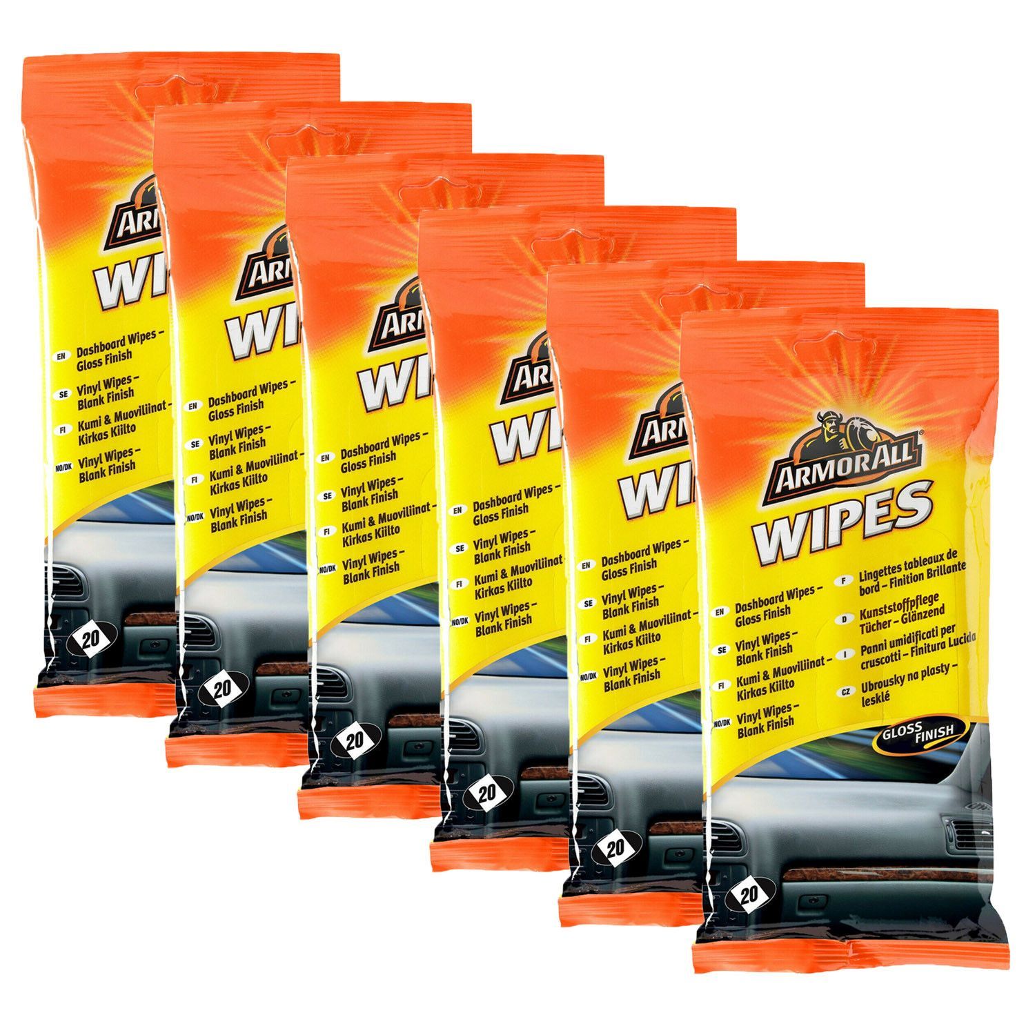 6x ARMOR ALL Auto Kunststoff Reinigungstücher glänzend Cockpit Pflege 20er