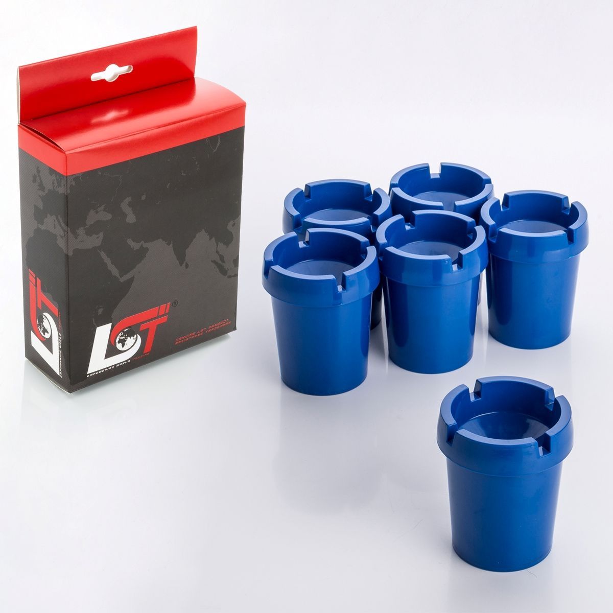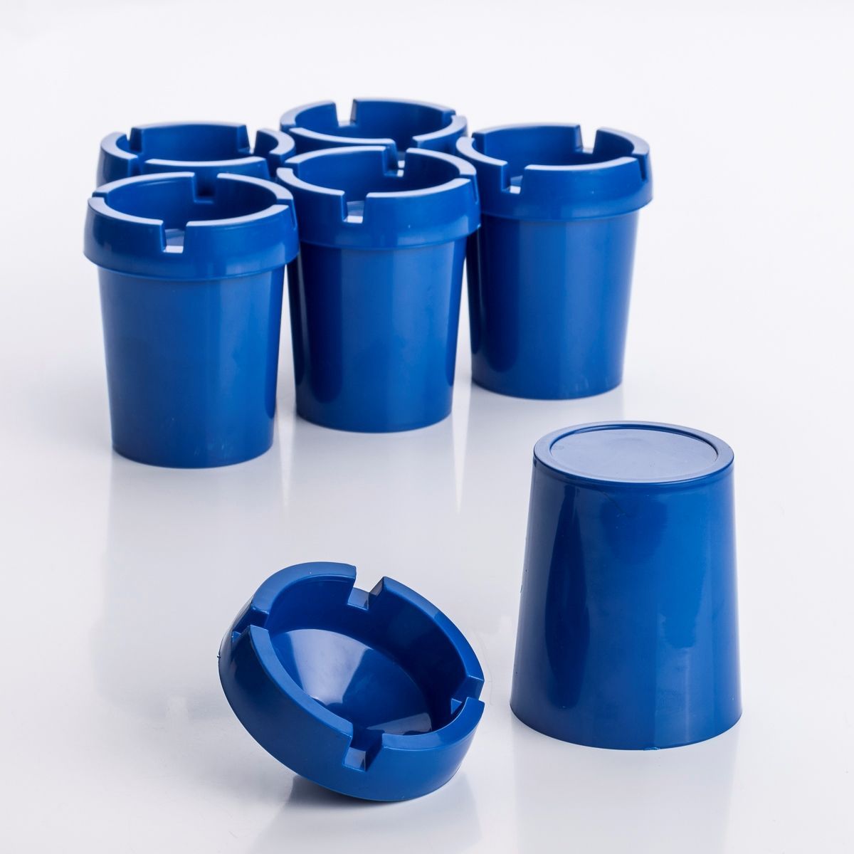 6x Aschenbecher Sturmaschenbecher rauchfrei Getränkehalter blau Kunststoff