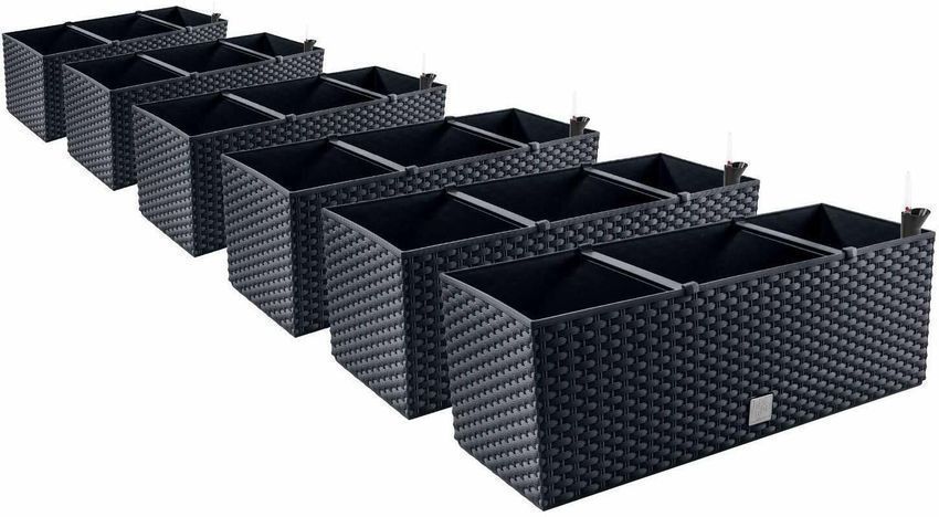 6x Balkonkasten Blumenkasten Rattan-Optik Pflanztopf Blumenkübel AnthrazitPAFEN