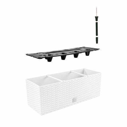 6x Balkonkasten Blumenkasten Rattan-Optik Pflanztopf Blumenkübel Weiß PAFEN