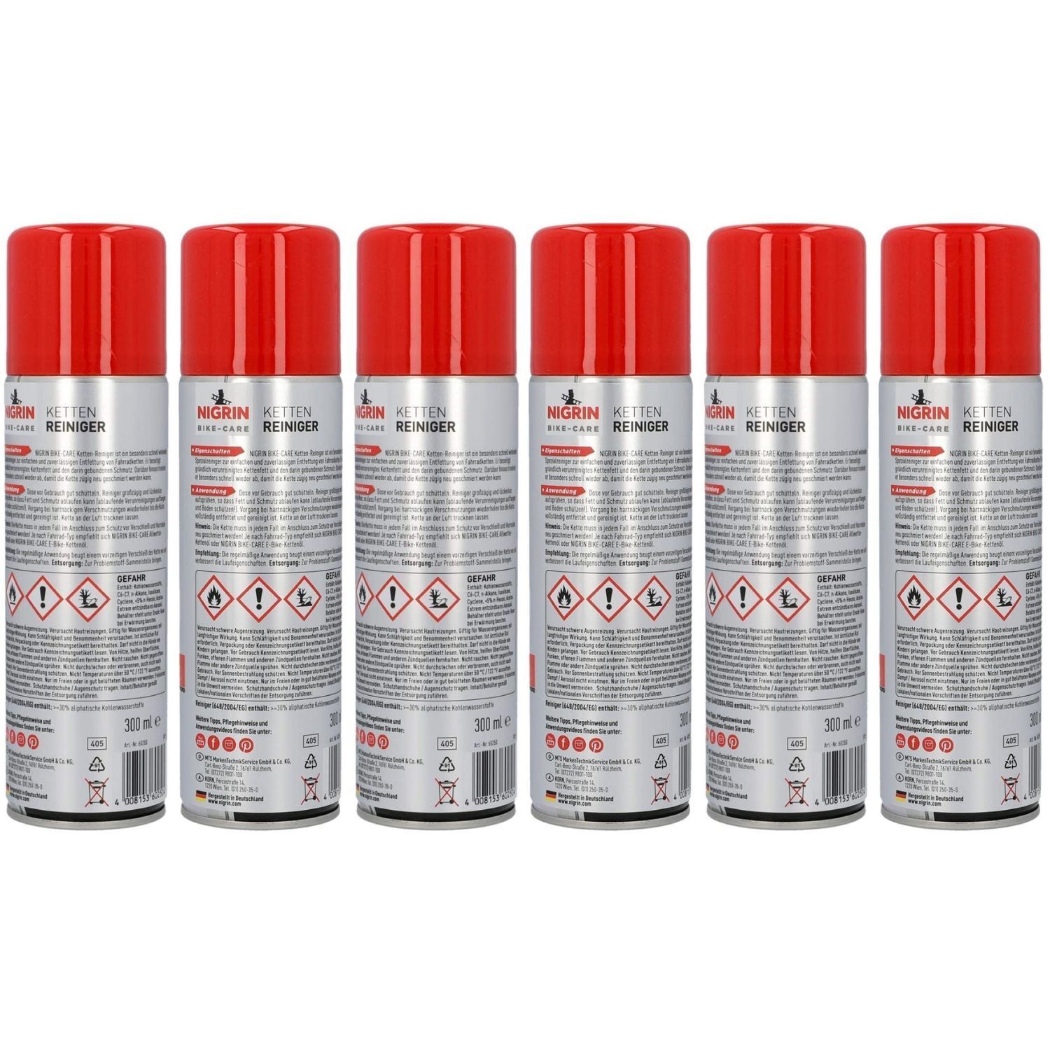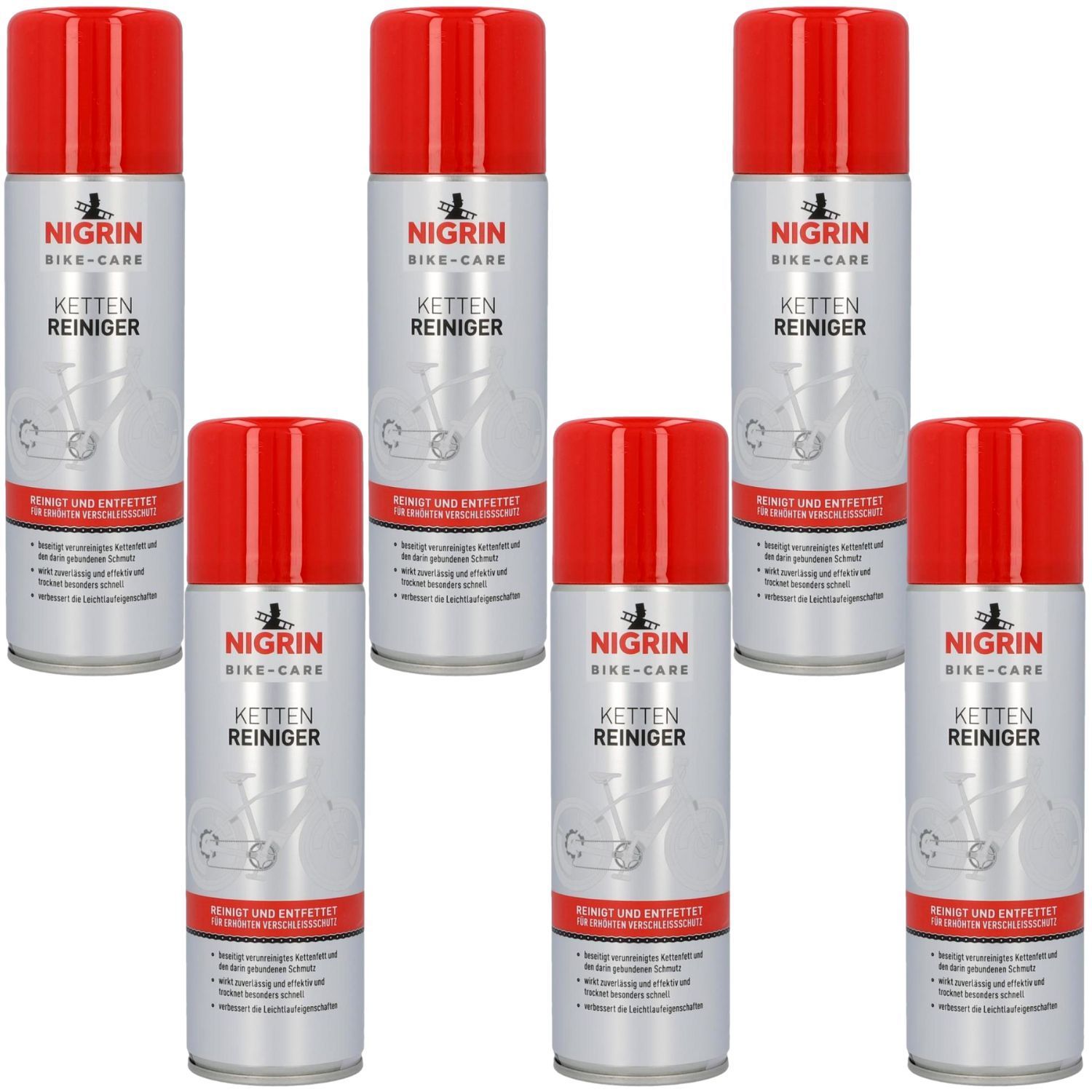 Nigrin 6x Bike Care Ketten-Reiniger je 300ml Spray für Fahrräder