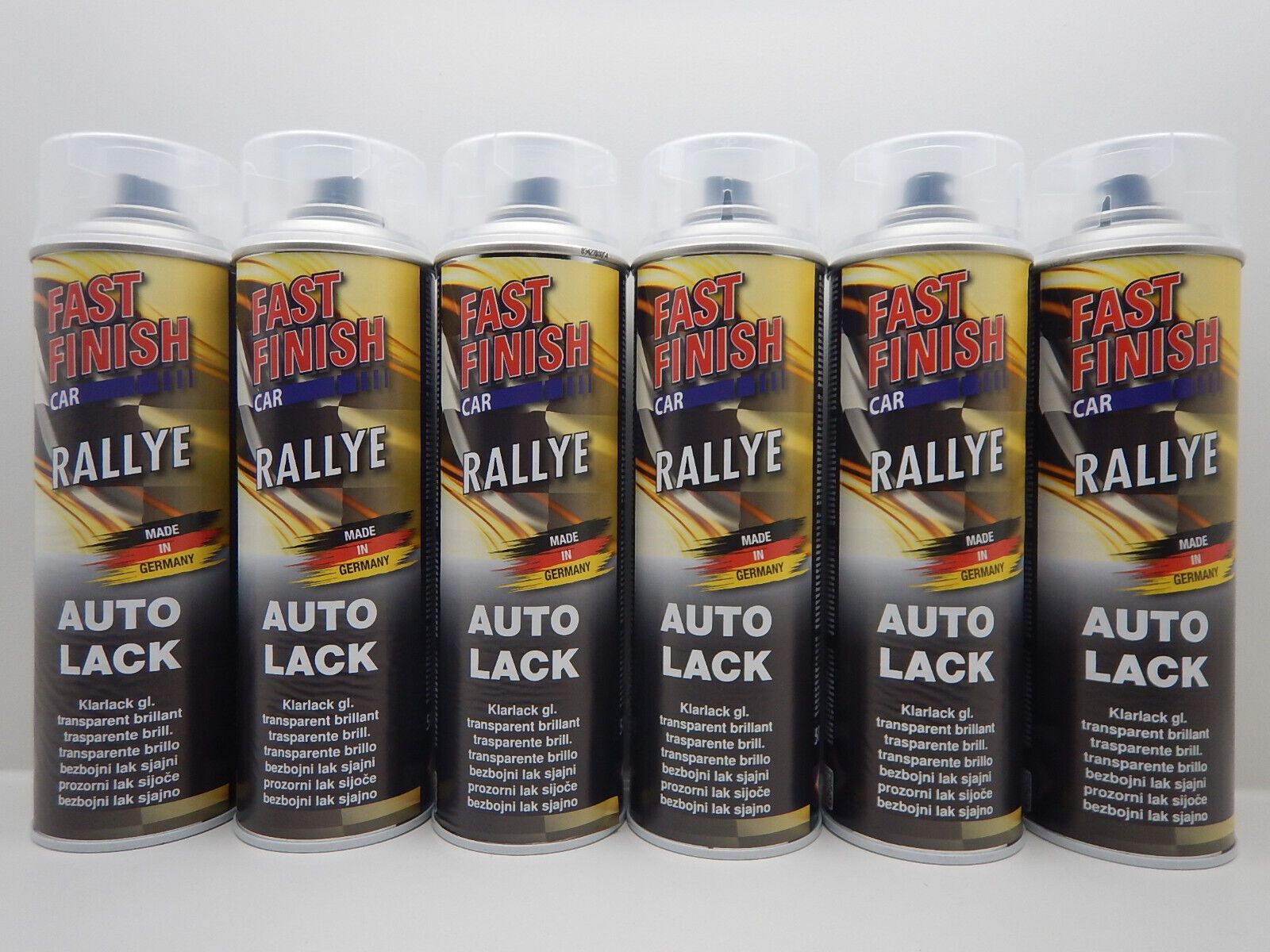 6x FAST FINISH CAR RALLYE Transparent Klarlack Glänzend KFZ Lackspray 500ml