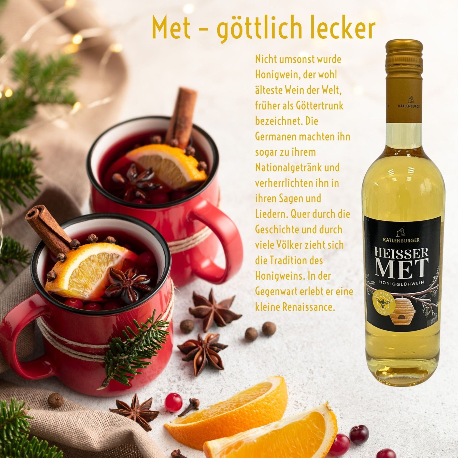 6x Heisser Met - Honig Glühwein 0,75l Flasche im Karton