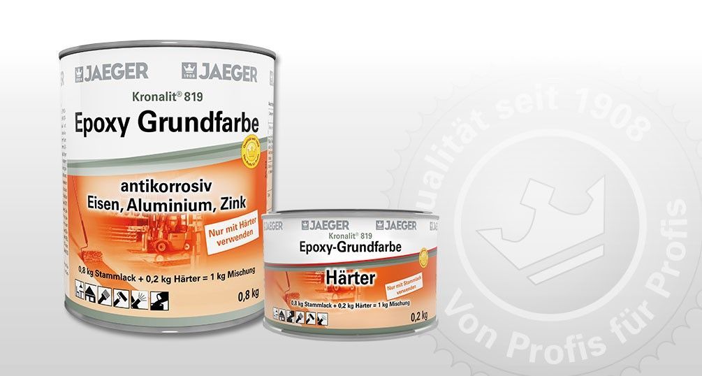 6x Jaeger 819 Kronalit Epoxy Grundfarbe 1 kg lichtgrau RAL 7035 Details für 6x 819 Kronalit Epoxy Grundfarbe 1 kg lichtgrau RAL 7035: - Beständig gegen Wasser und viele Chemikalien. - Grundierfarbe. - Auf Maschinen und Geräte mit hoher mechanischer Belastung. Grundierfarbe für Eisen, Stahl, Aluminiu