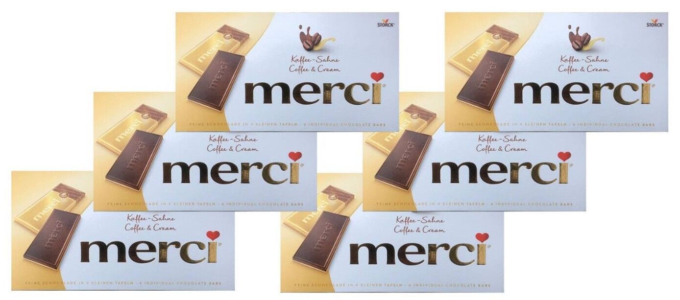 6x merci - Edel-Kaffee-Sahneschokolade auf Weißer Schokolade - 100 g Schachtel