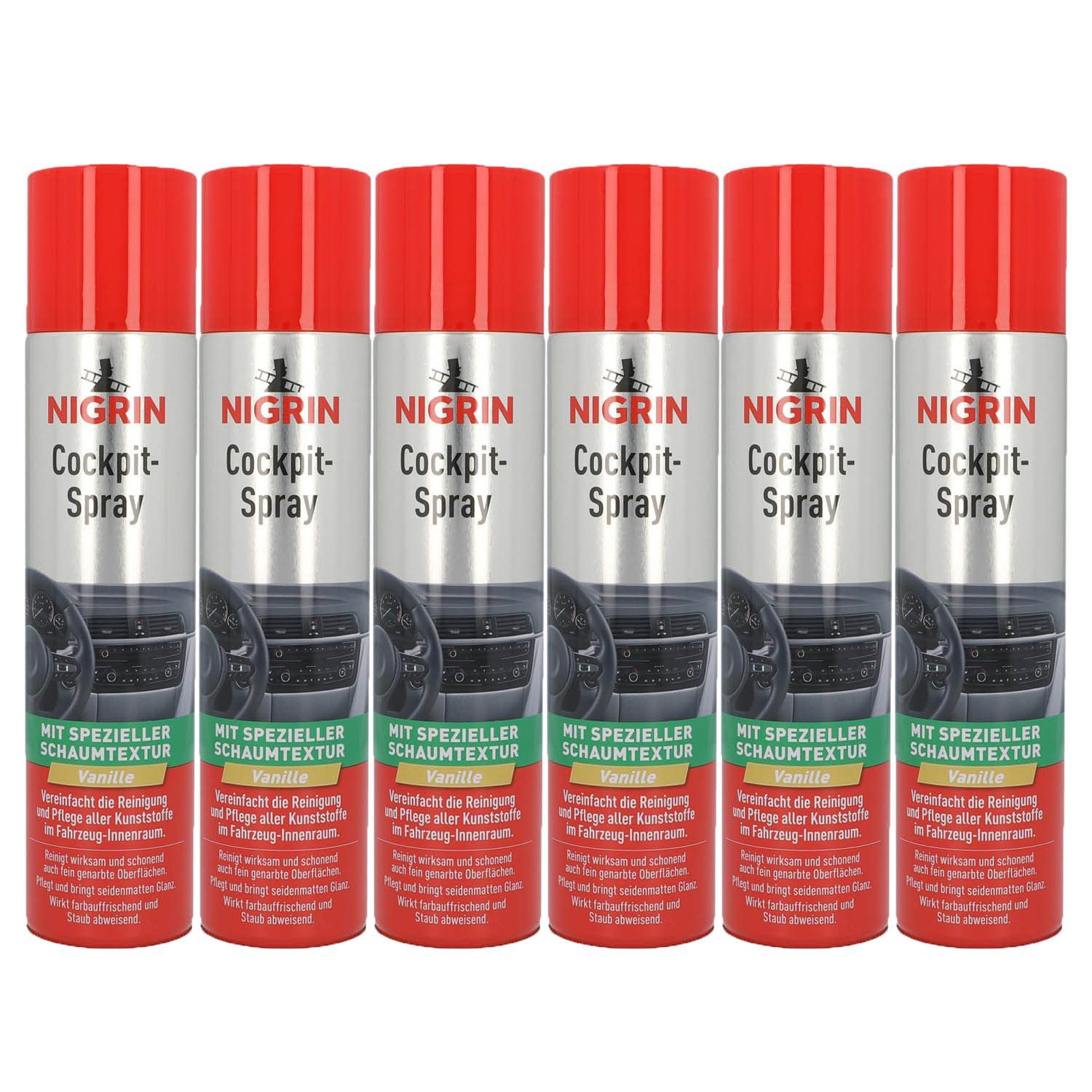 Nigrin 6x Nigrin Cockpit Spray Vanille Sprühdose 400 ml Cockpitreiniger