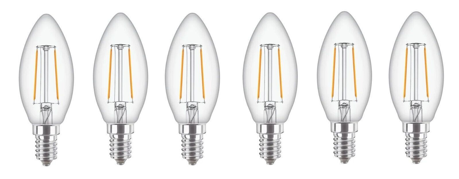 Philips 6x Philips LED Filament Kerze E14 2W = 25W warmweiß EEK: (Spektrum A-G)