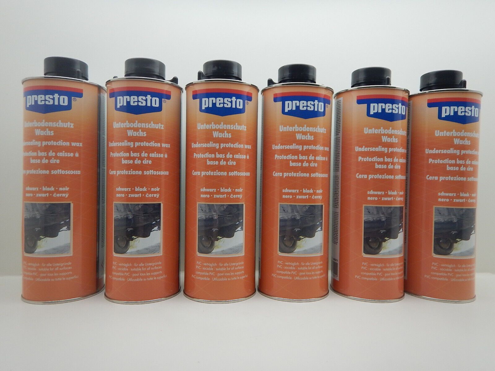 6x PRESTO Unterboden Unterbodenschutz Rostschutz Rost UBS Wachs schwarz 1L
