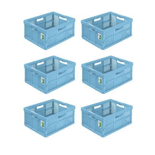6x Stabile Profi Klappbox 32L PAFEN Einkaufskiste klappbar mit Soft-Griffe Blau