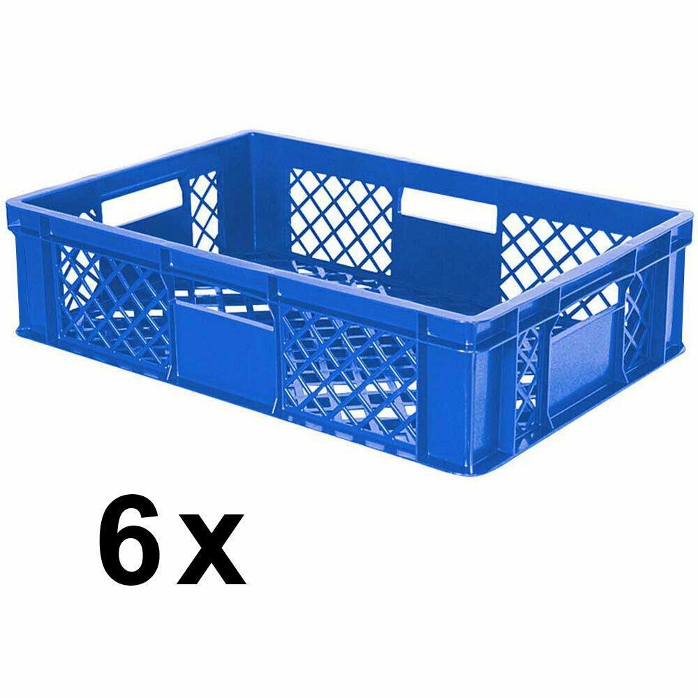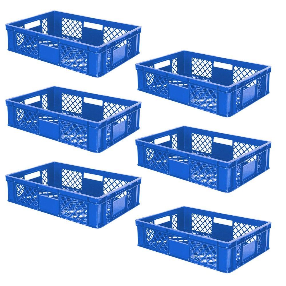 6x Stapelkorb / Bäckerkiste, LxBxH 600x400x150 mm, PE-HD, blau, lebensmittelecht