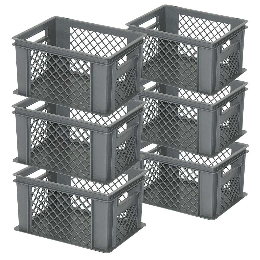 6x Stapelkorb / Eurobehälter, LxBxH 400 x 300 x 220 mm, grau, Boden geschlossen
