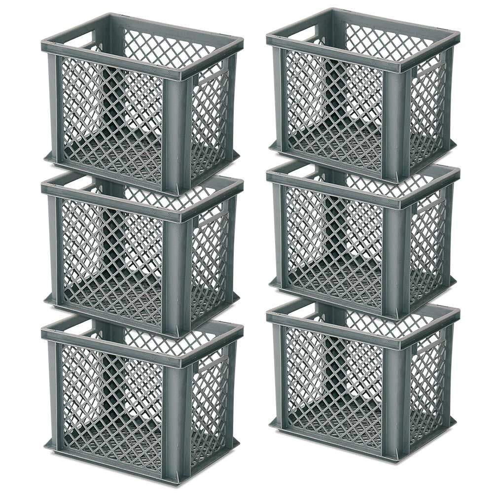 6x Stapelkorb / Eurobehälter, LxBxH 400 x 300 x 325 mm, grau, lebensmittelecht