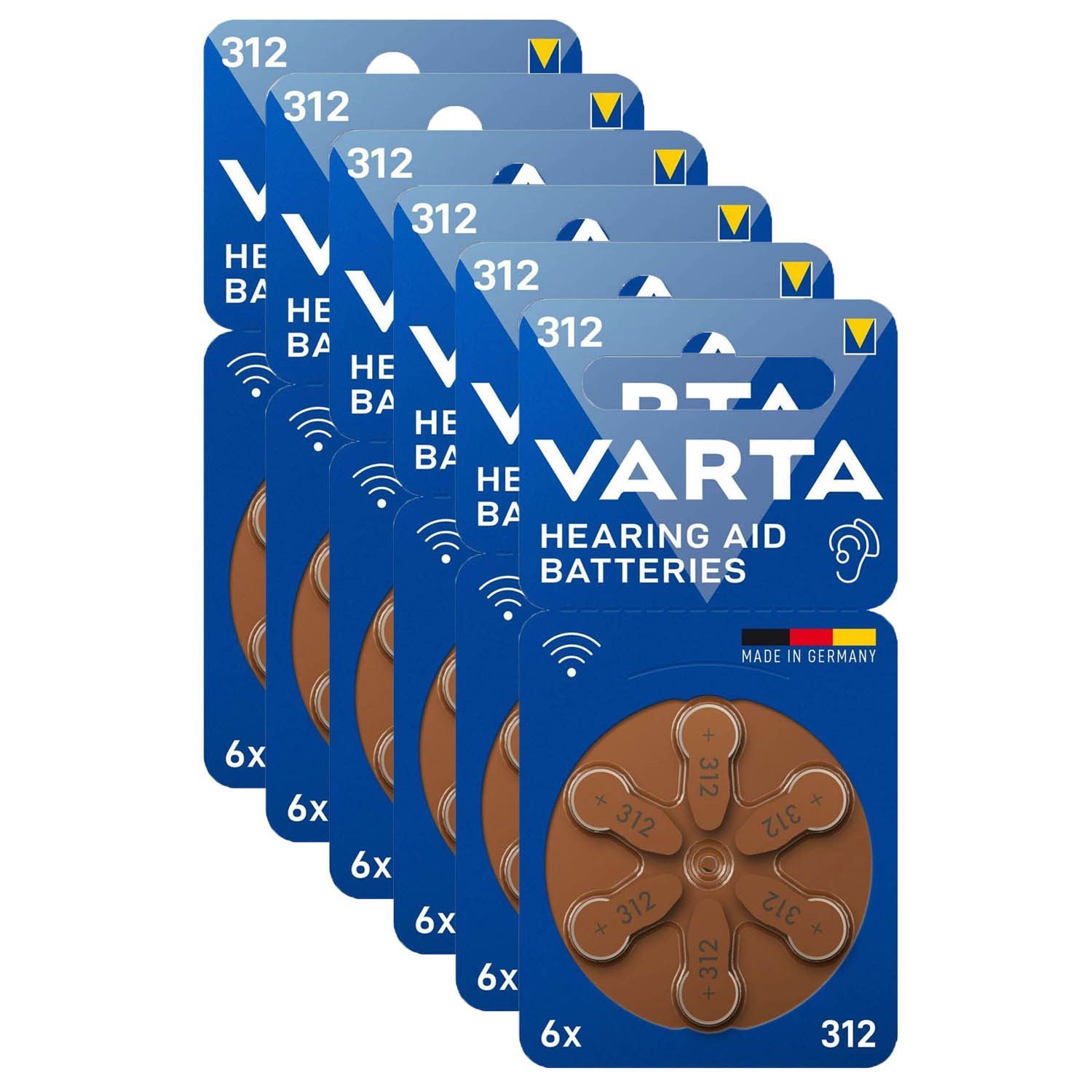 Varta 6x VARTA Hörgerätebatterien Zinc Air Hearing Aid 312 PR41 1,45V 6er Blister