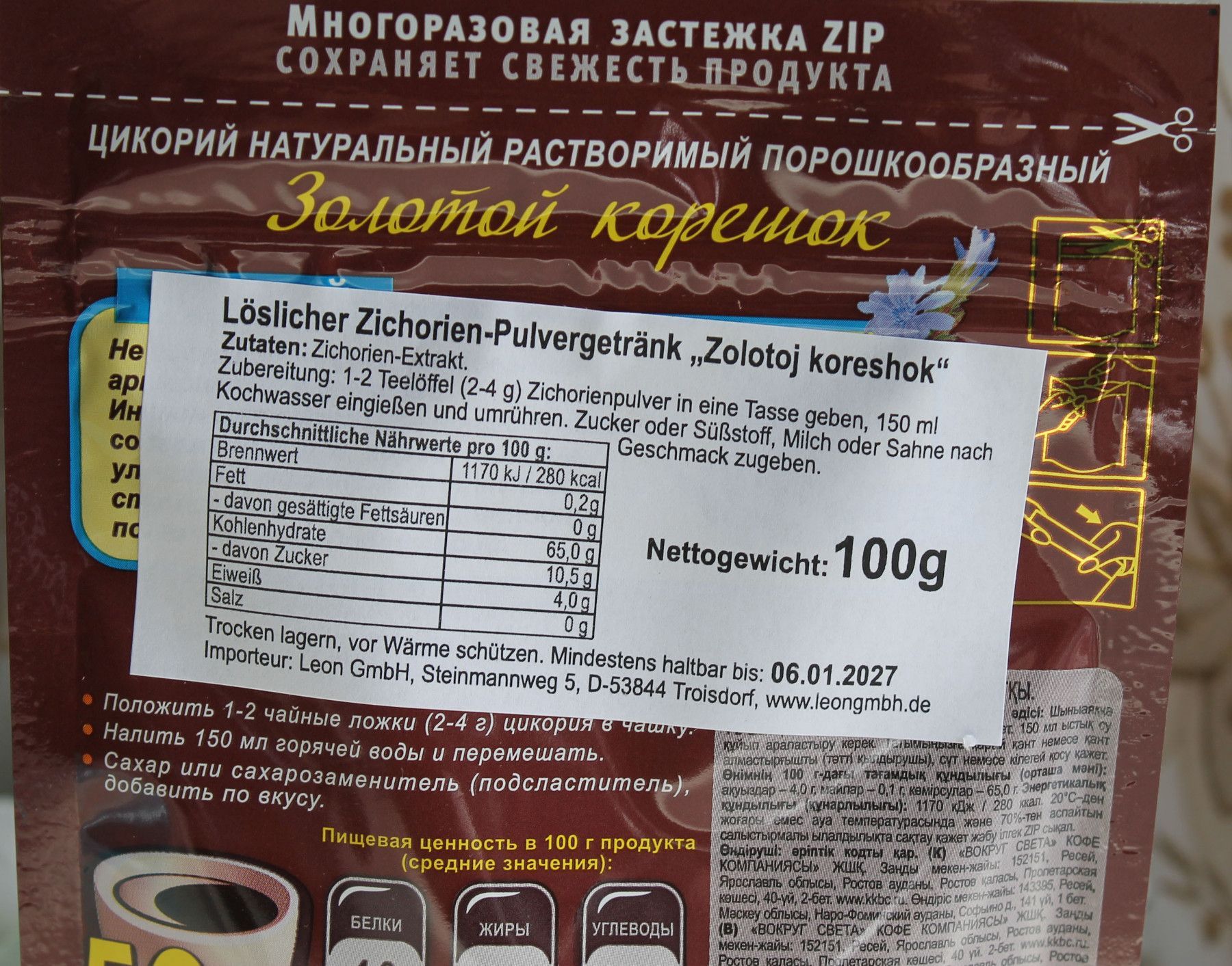 - Kühl und trocken lagern von + 5°C bis + 20°C. Vor Wärme schützen. Und einer Luftfeuchtigkeit von nicht mehr als 70%, mit fest verschlossenem Verschluss-Zip.